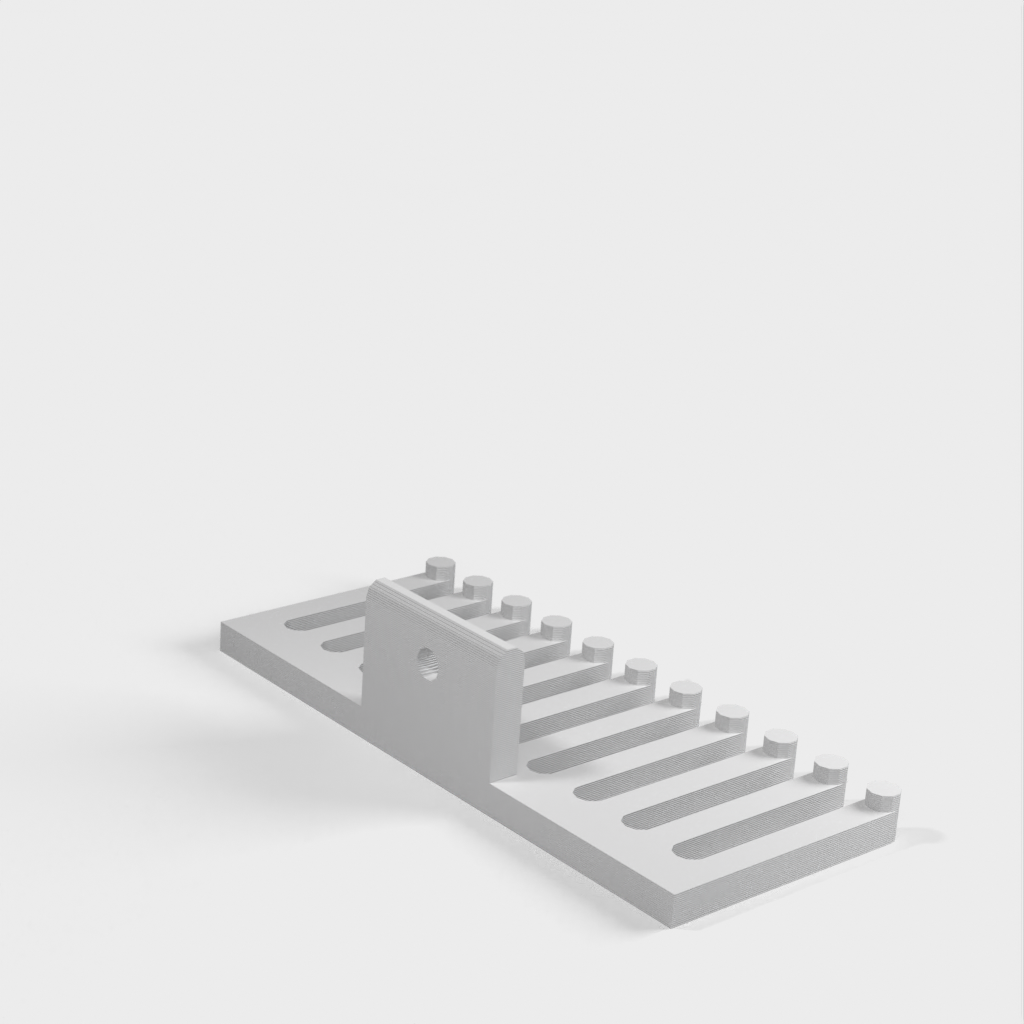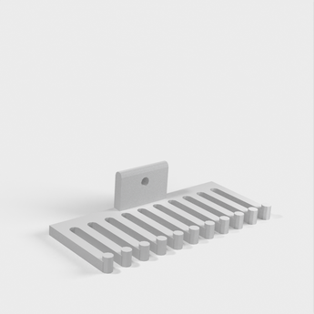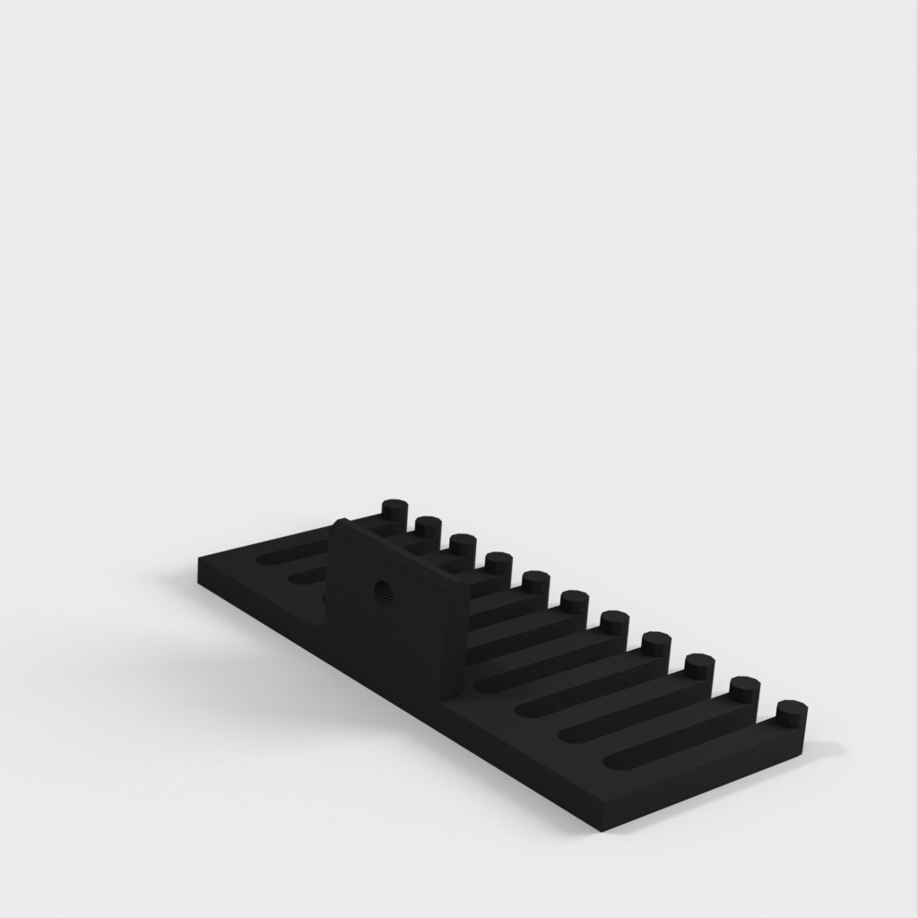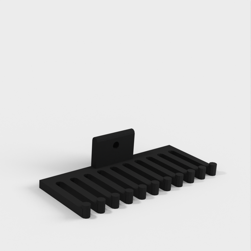 Portacavi che può essere fissato con una vite. Il portacavi ha la forma di un pettine, dove il numero di denti del pettine, l'altezza, la larghezza ecc. possono essere personalizzati a seconda delle esigenze. È possibile organizzare facilmente molti cavi diversi per creare uno spazio di lavoro ordinato.