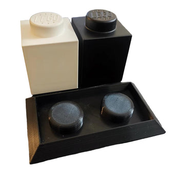 Supporto per macina sale e pepe Lego. Il supporto è pratico ed elegante e crea ordine sulla tavola. È progettato per contenere i macina sale e pepe Lego standard, rendendo la tua esperienza culinaria ancora più giocosa e colorata.