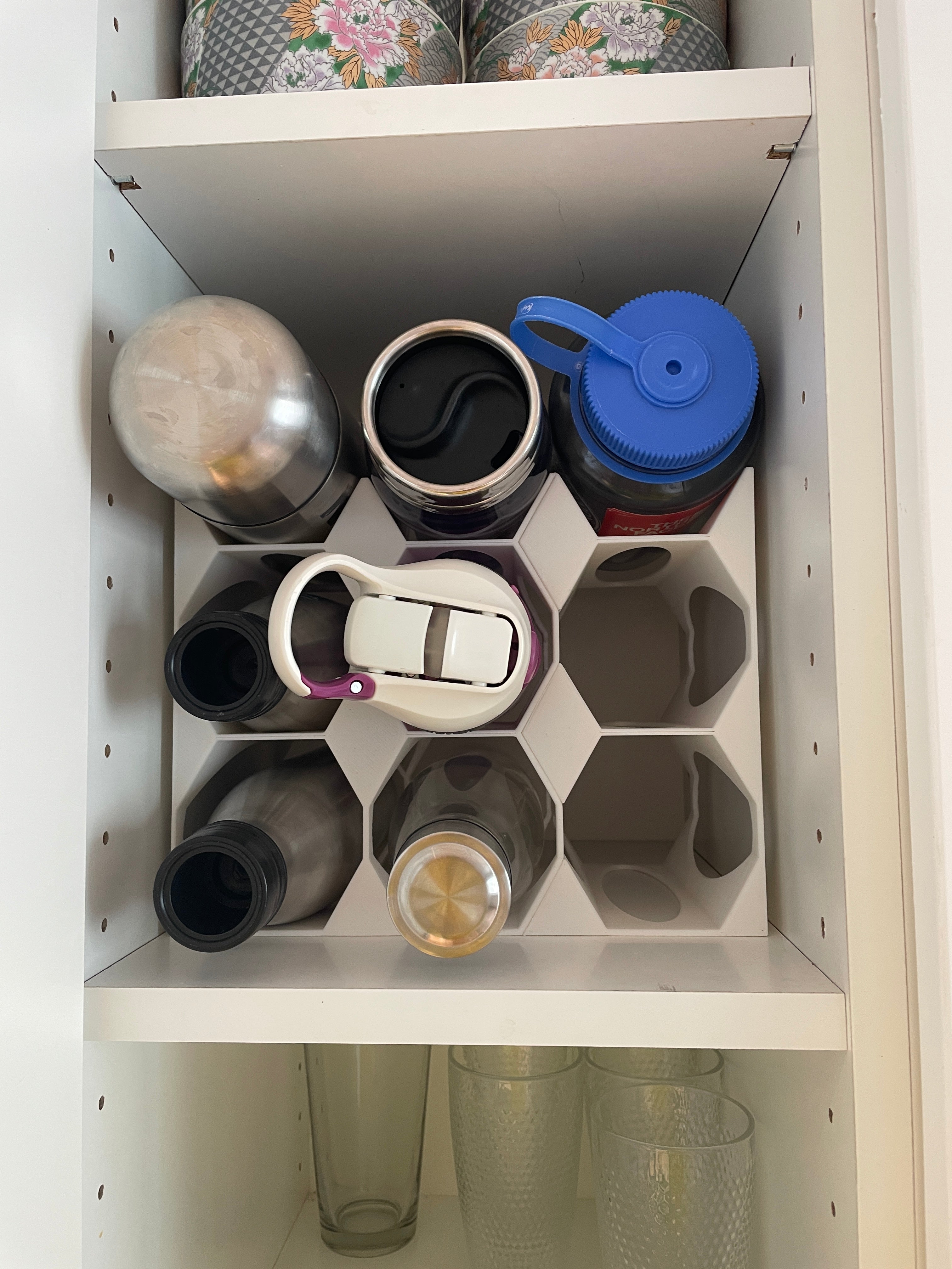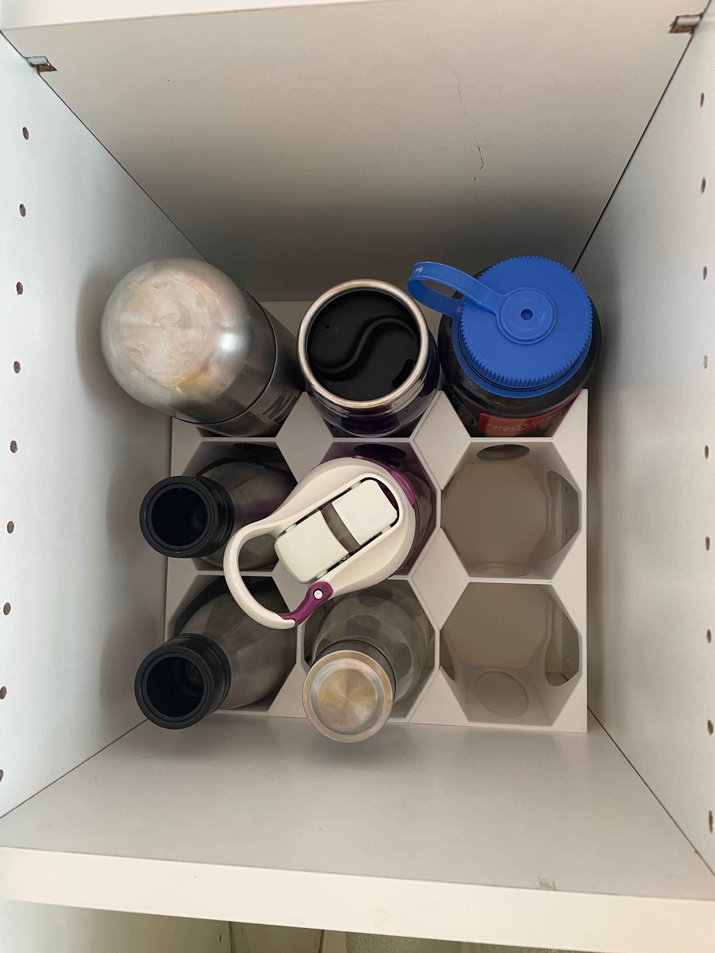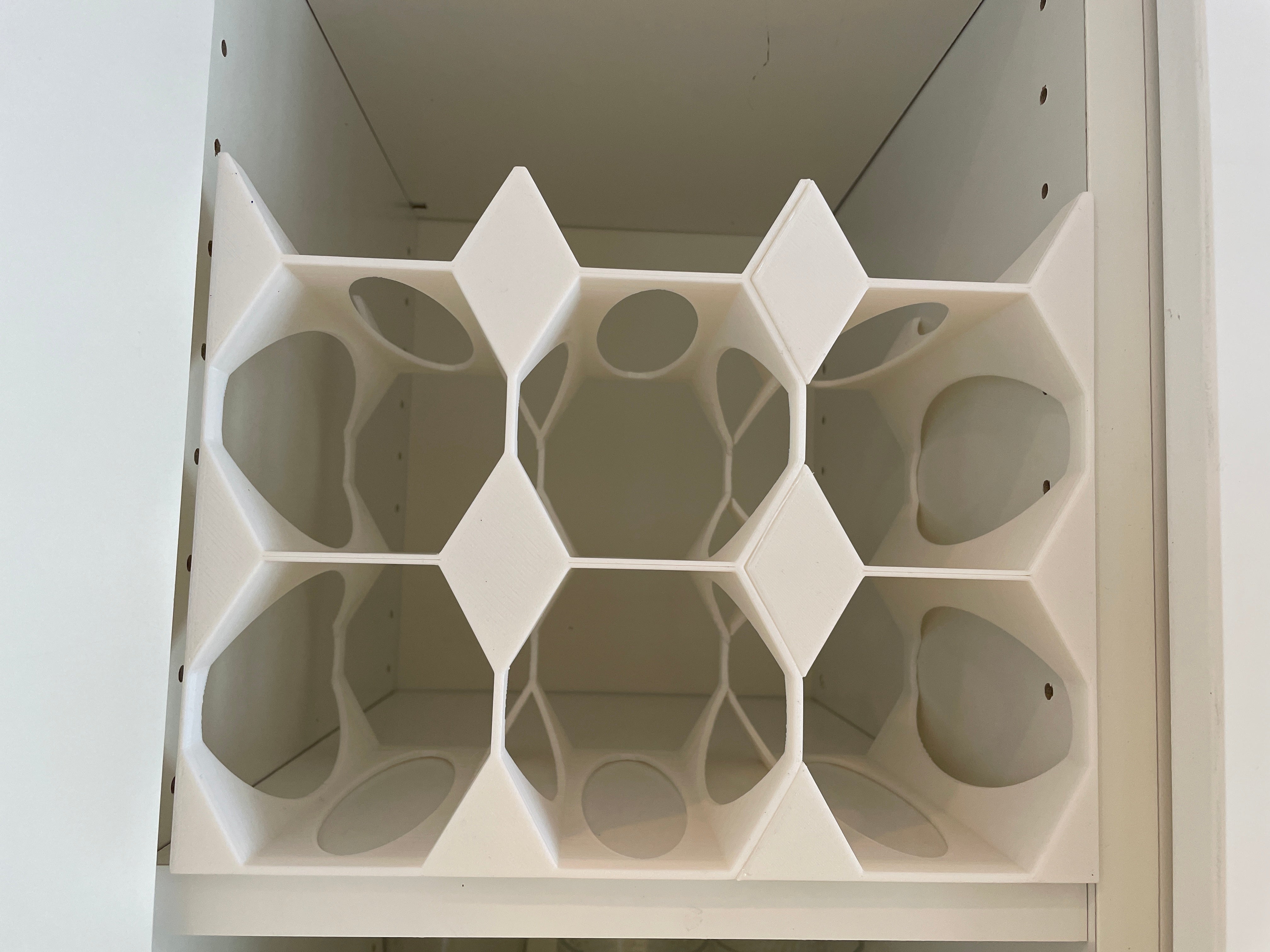 Lo scaffale offre uno stoccaggio flessibile, dove i due livelli inferiori possono contenere bottiglie con un diametro fino a 79 mm. Il livello superiore è abbastanza spazioso per una bottiglia Nalgene o bottiglie simili con un diametro fino a 92 mm. Ciò ti consente di conservare insieme diversi tipi di bevande.