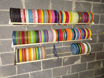 I ripiani sono abbastanza spaziosi per organizzare tutti i tuoi dischi, dai grandi dischi midrange (ad es. la classe 180g) a tutti i tipi di driver e putter. Questo sistema ti aiuta a mantenere i tuoi dischi organizzati e facilmente accessibili, presentandoli allo stesso tempo in modo chiaro. È una soluzione ideale per riordinare la tua collezione e ottimizzare lo spazio nella tua casa, garage o area da disc golf.