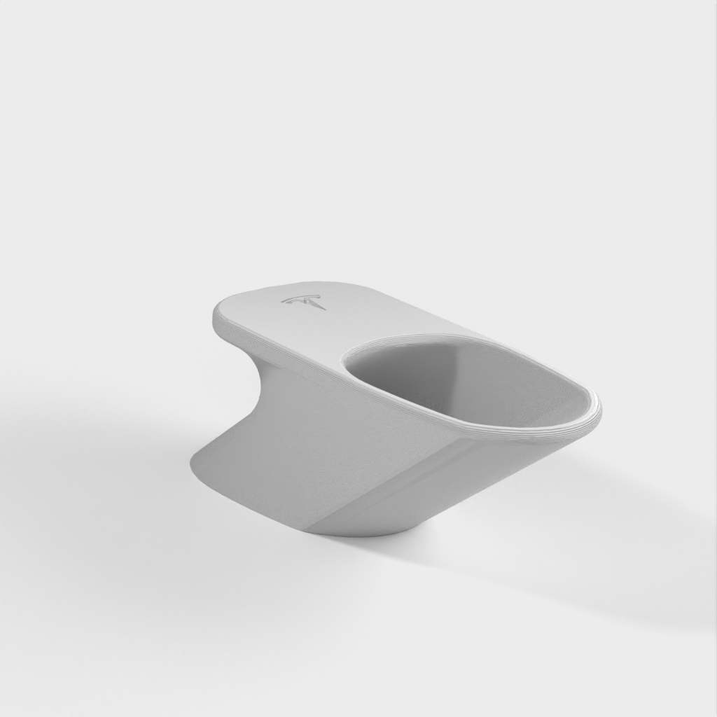 Una versione leggermente modificata dell'organizer per cavi Tesla Wall Plug con un piccolo logo intricato. Questa versione non ha testo.