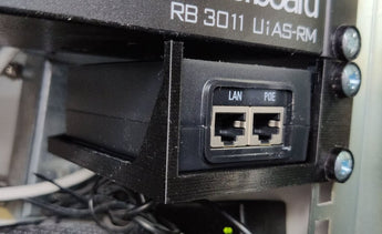 L'adattatore PoE a parete può essere montato con due viti M3 e poi si può fissare l'adattatore sopra di esso. Speculare se si desidera montarlo sul lato sinistro del rack.
