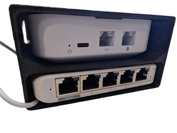 Presenta il tuo Unifi UX Gateway e l'interruttore Unifi Flex Mini a 5 porte in modo organizzato e stiloso con questo pratico scaffale. Progettato per mantenere i tuoi dispositivi di rete saldamente in posizione, lo scaffale assicura che l'Unifi UX si inserisca delicatamente nel suo posto, con una scansione in alto per prevenire l'accumulo di calore e le interferenze wifi. Unifi Flex Mini utilizza un canale più ampio a sinistra per consentire il collegamento del cavo di alimentazione USBC, rendendo l'installazione facile e senza problemi.