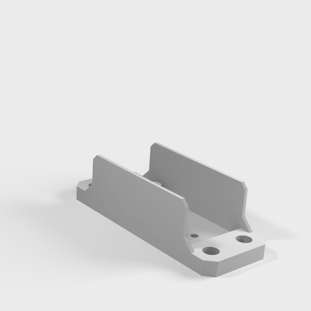 La staffa è dotata di inserti per morsetti a vite M3, che garantiscono una connessione affidabile e robusta al convertitore buck. È possibile fissare facilmente il modulo convertitore con viti M2.4. Per montare la staffa stessa sulla guida DIN, viene utilizzato il noto modello PCB DIN Clip (disponibile separatamente) insieme a due viti M2, garantendo un fissaggio rapido e sicuro.
