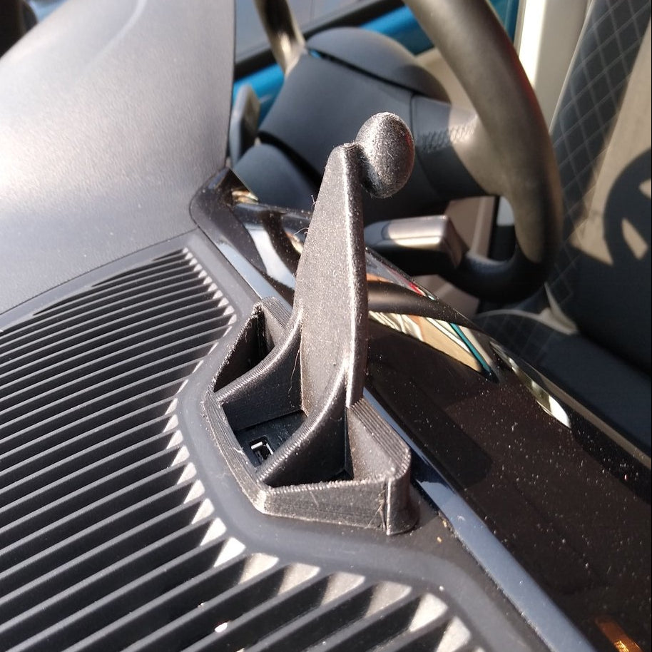 Questo è un supporto per GPS Garmin per i tipi di montaggio successivi che si trovano nelle Citigo, Up e Mi del 2017 che hanno una presa USB sotto la base. Il collo di montaggio ha una sfera con raggio di 17,4 mm che si adatta alla presa standard che si trova sulle staffe GPS Garmin. Dovrebbe essere abbastanza alto da contenere GPS fino a 6".