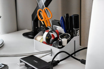 Questo pratico organizer da scrivania è progettato per aiutarti a mantenere in ordine il tuo spazio di lavoro. Combina un efficace spazio di archiviazione per i tuoi articoli di cancelleria con una soluzione intelligente per la gestione dei cavi. Con diversi scomparti dedicati, puoi facilmente organizzare penne, matite, quaderni e altri piccoli oggetti in modo che siano sempre a portata di mano.