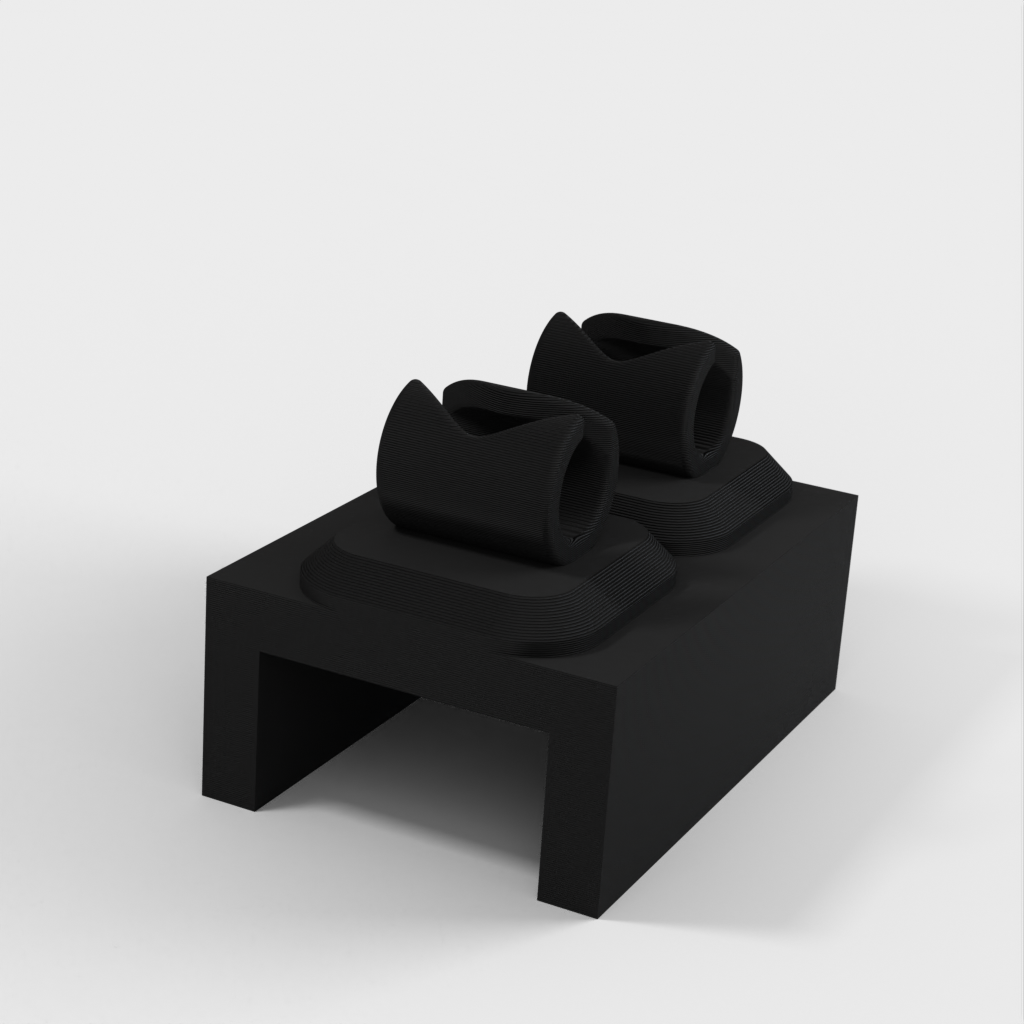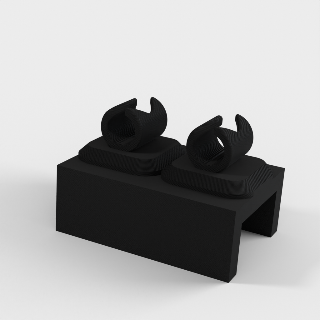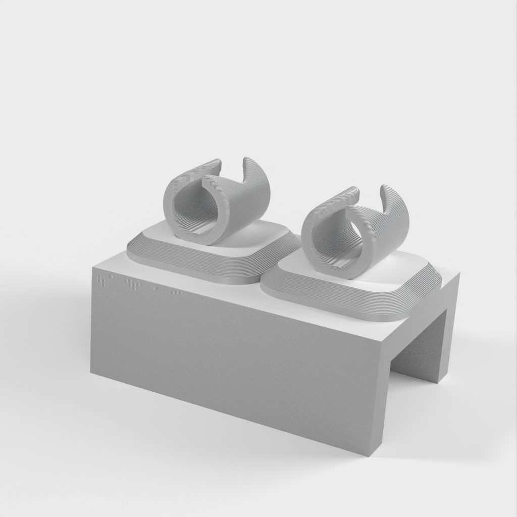 Questo semplice supporto per cavi è stato progettato per organizzare e tenere separati i cavi. Può essere facilmente montato a parete con delle viti per creare uno spazio di lavoro ordinato. Il portacavi è stampato in un'esclusiva seta PLA viola che aggiunge un tocco di colore alla vostra postazione di lavoro.