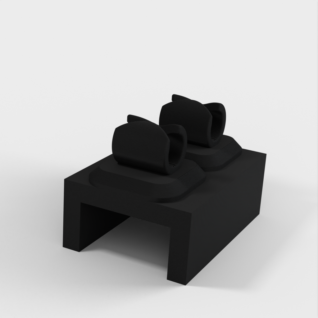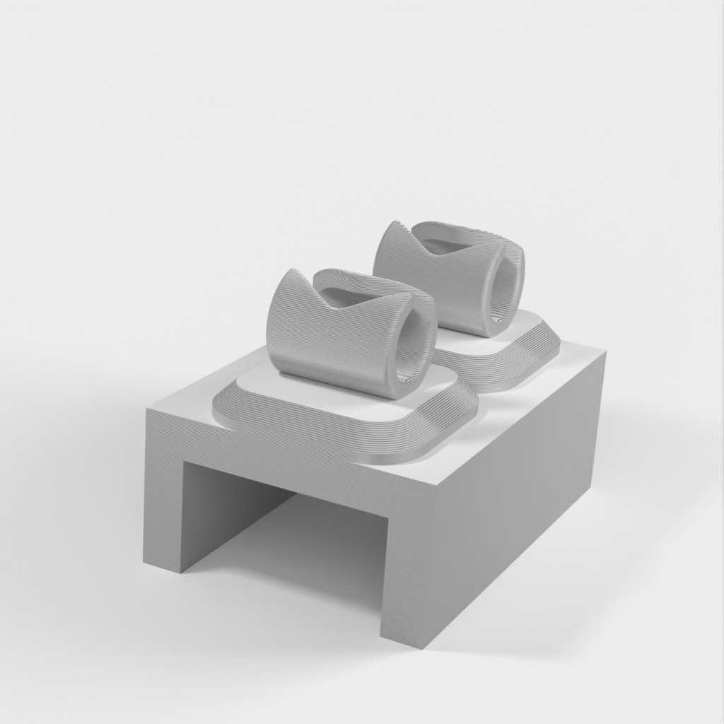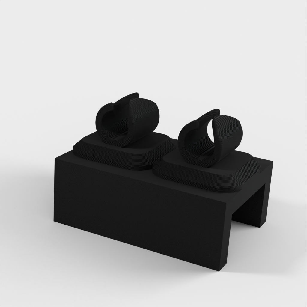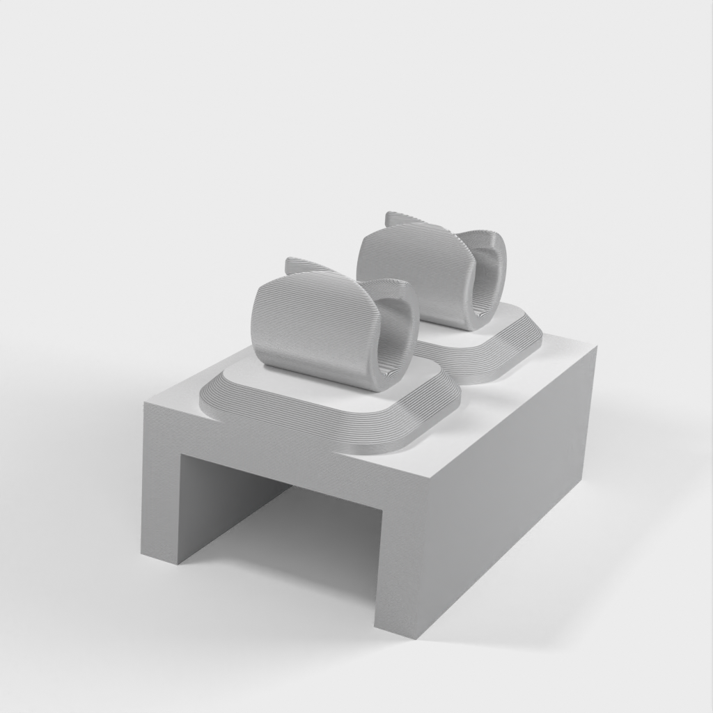 Questo semplice supporto per cavi è stato progettato per organizzare e tenere separati i cavi. Può essere facilmente montato a parete con delle viti per creare uno spazio di lavoro ordinato. Il portacavi è stampato in un'esclusiva seta PLA viola che aggiunge un tocco di colore alla vostra postazione di lavoro.