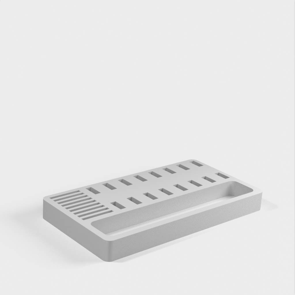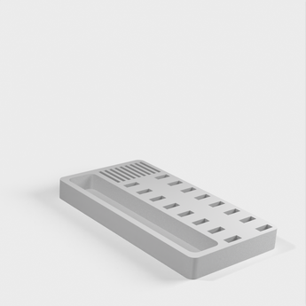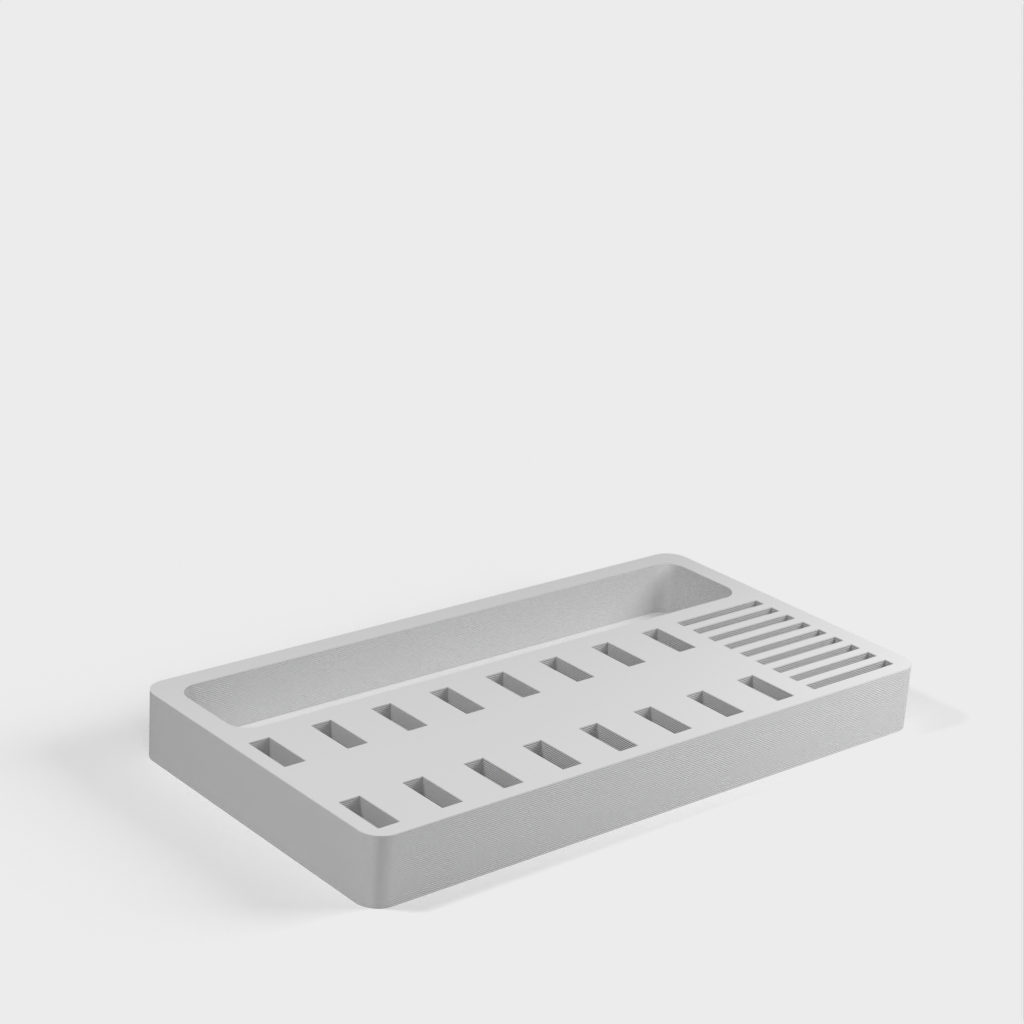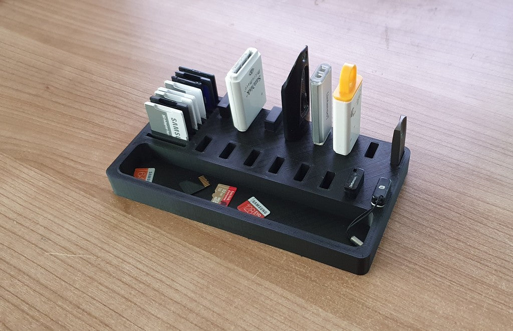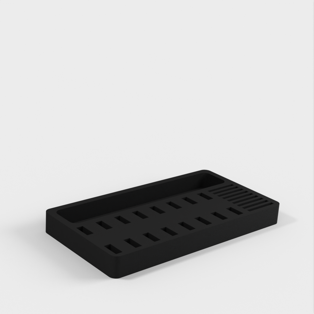 Semplice supporto USB con spazio per 16 chiavette USB e 9 schede SD. Questo supporto crea un'organizzazione e una visione d'insieme dei vostri dispositivi di memorizzazione in un supporto semplice e piacevole.