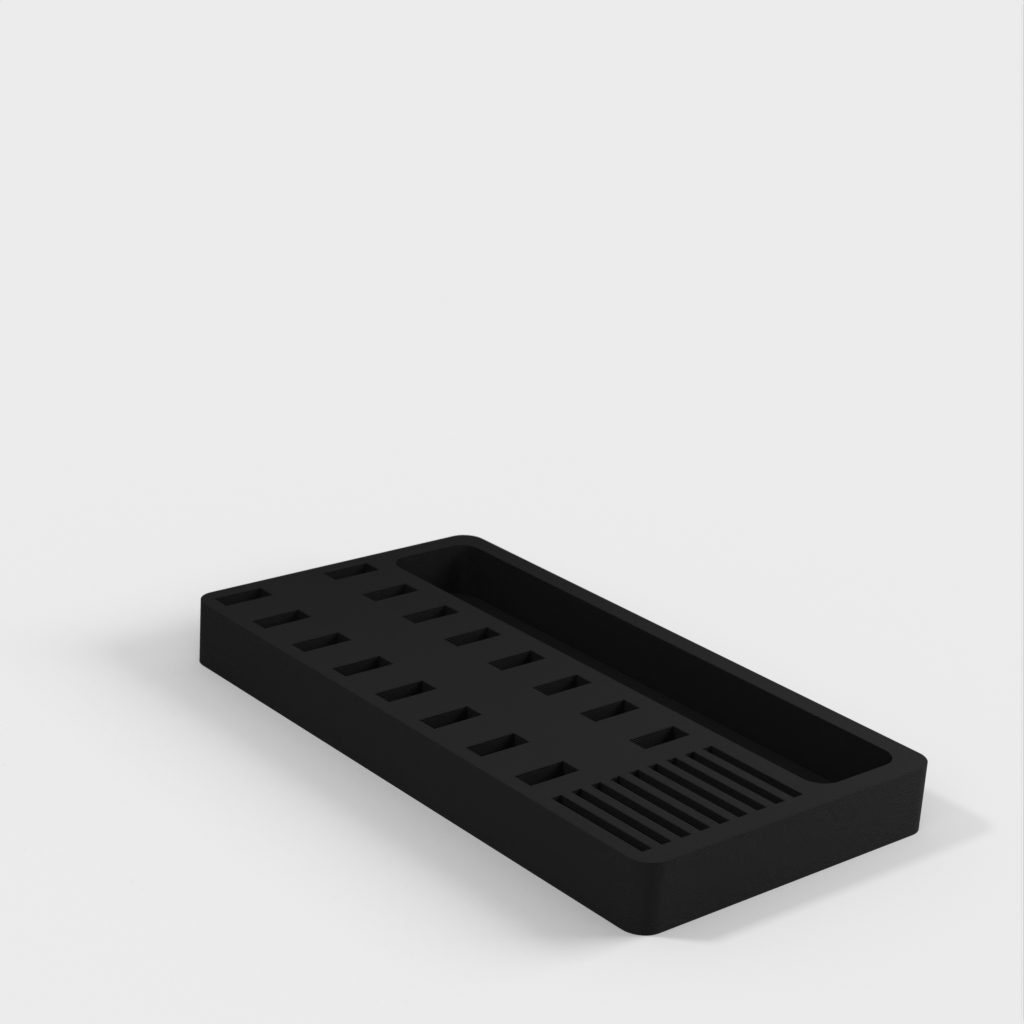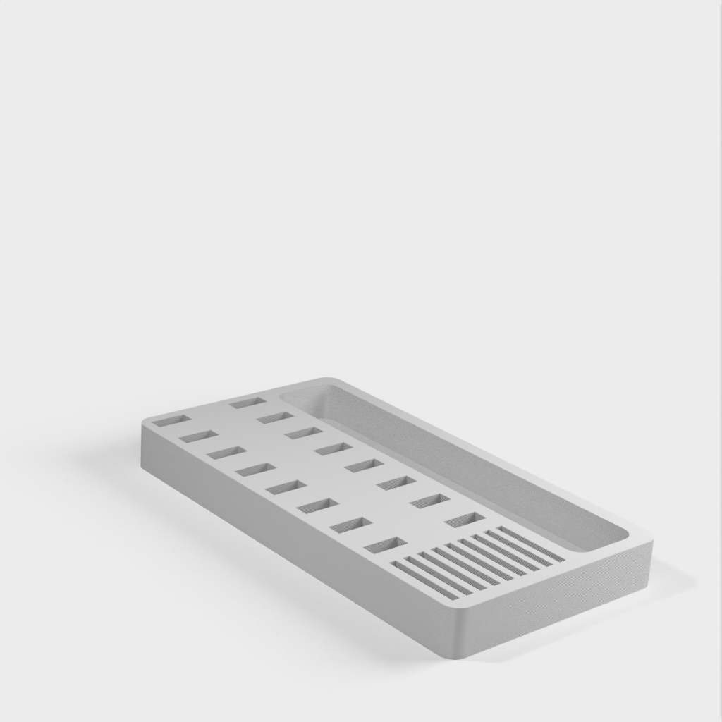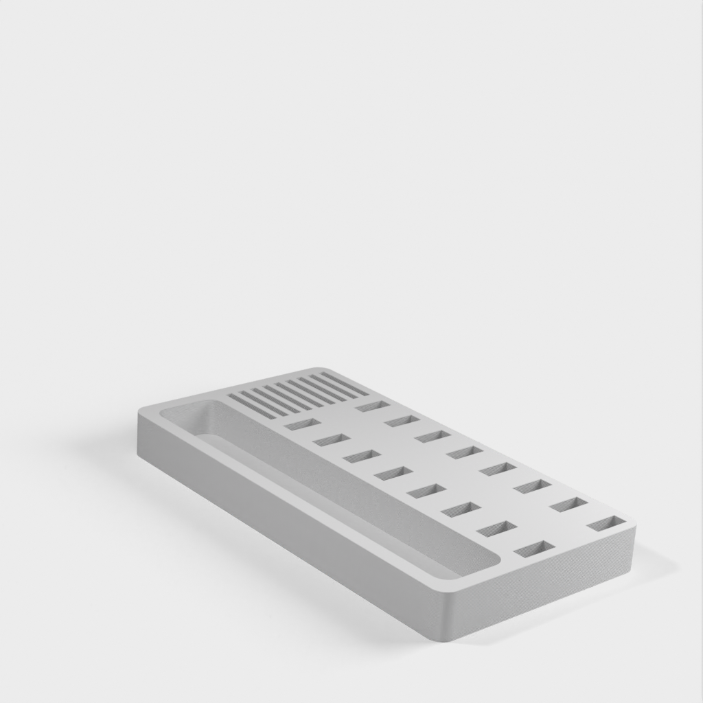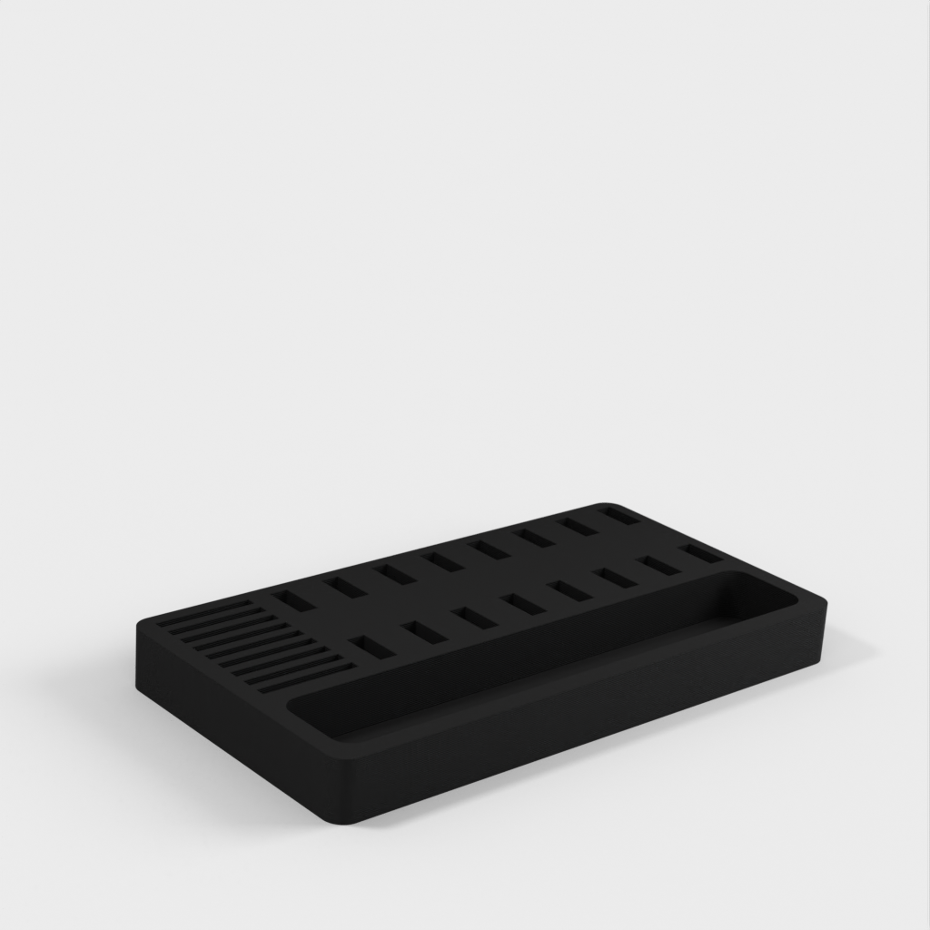 Semplice supporto USB con spazio per 16 chiavette USB e 9 schede SD. Questo supporto crea un'organizzazione e una visione d'insieme dei vostri dispositivi di memorizzazione in un supporto semplice e piacevole.