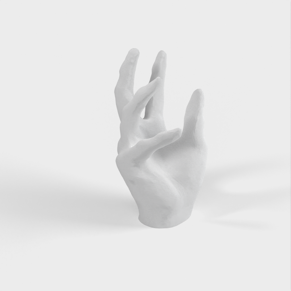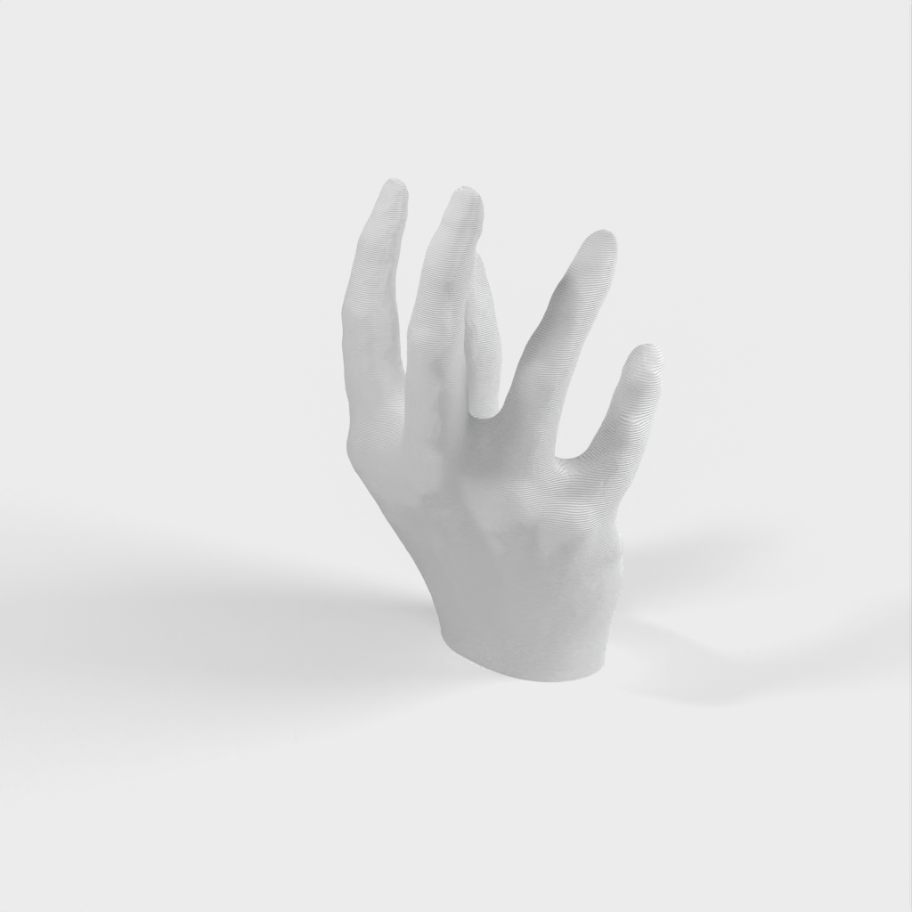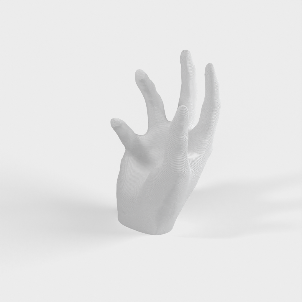 La mano dell'iPhone è una soluzione perfetta per riporre lo smartphone sulla scrivania. Questa replica di una mano scansionata in 3D è progettata per contenere l'iPhone o qualsiasi altro smartphone. È sagomata per una stampa ottimale senza materiale di supporto.