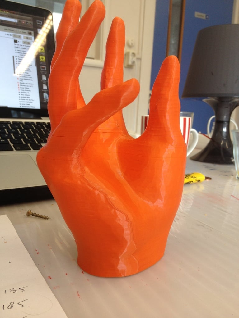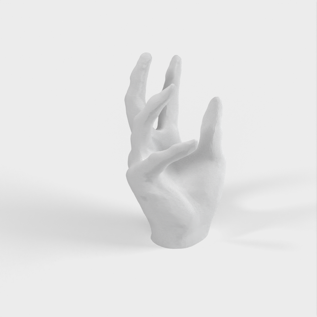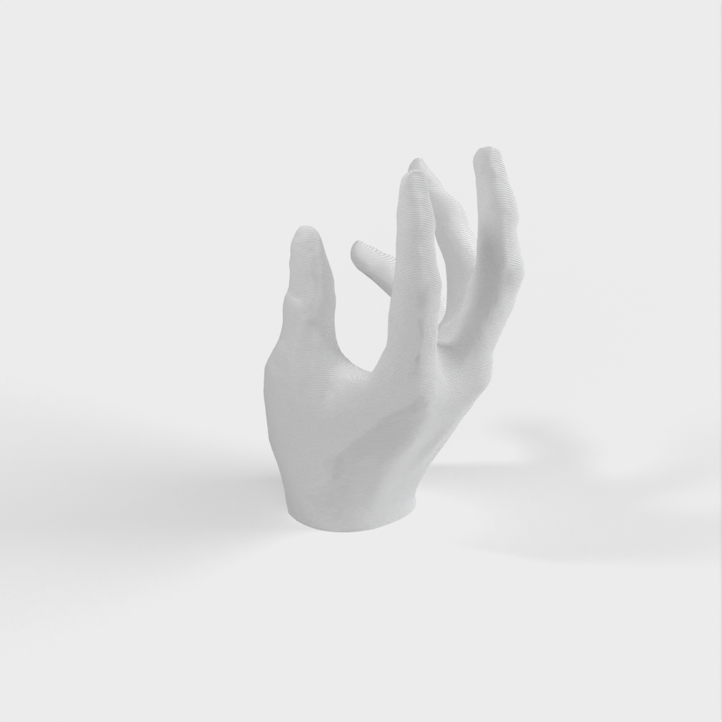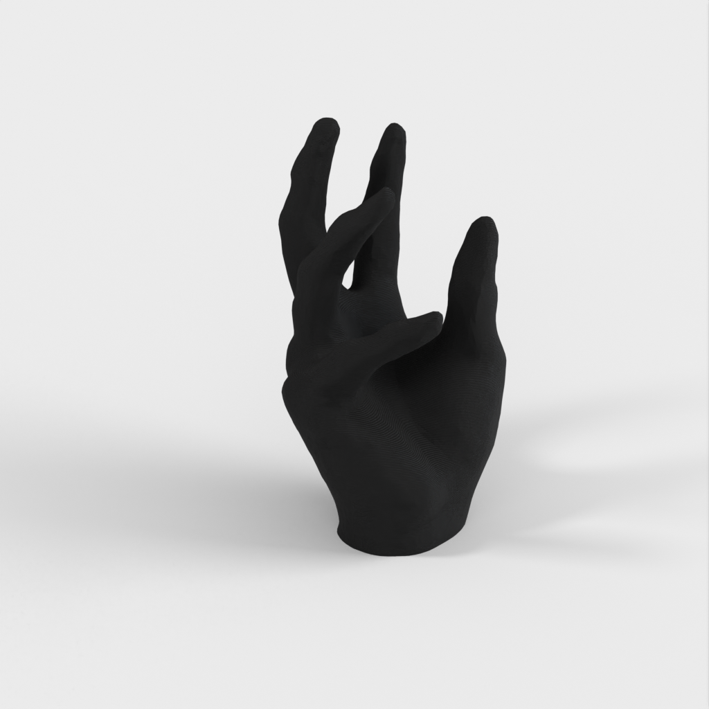 La mano dell'iPhone è una soluzione perfetta per riporre lo smartphone sulla scrivania. Questa replica di una mano scansionata in 3D è progettata per contenere l'iPhone o qualsiasi altro smartphone. È sagomata per una stampa ottimale senza materiale di supporto.