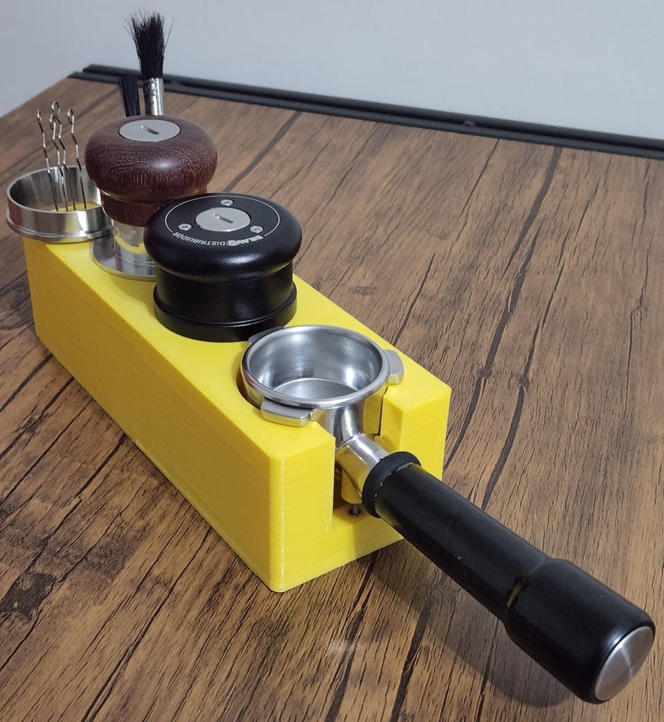 Con un sistema di regolazione integrato, il portafiltro può essere tenuto saldamente in posizione durante il processo, il che contribuisce a risultati di pressatura uniformi e precisi. Per ottenere la massima stabilità e protezione delle apparecchiature, si consiglia di aggiungere cuscinetti in gomma sotto la stazione di pressatura e schiuma EVA sul fondo dei supporti. Ciò garantisce una presa salda e protegge gli utensili del barista. Questa stazione è un accessorio essenziale per l'espresso che contribuisce a un processo di preparazione più organizzato ed efficiente e integra l'uso di attrezzature di qualità come un buon tamper.