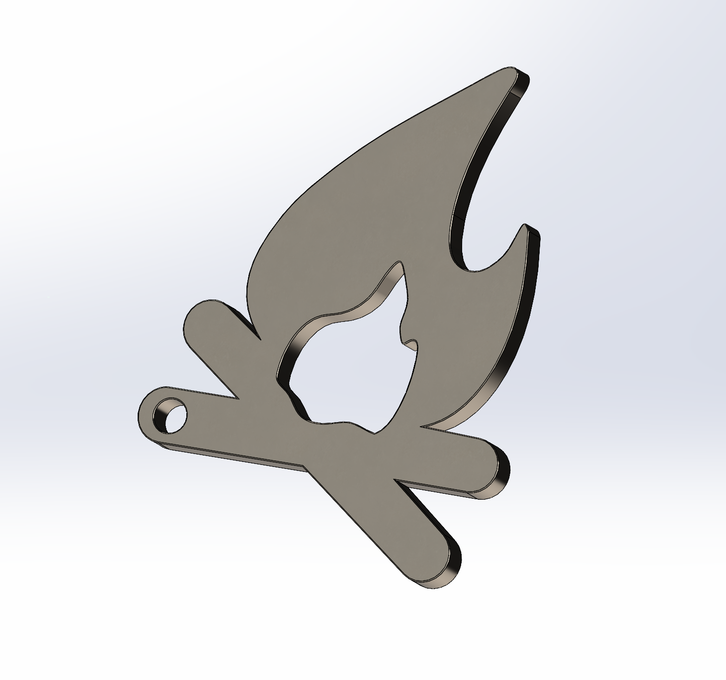 Un apribottiglie da campeggio che crea un modo pratico e divertente per aprire le bottiglie di birra. Utilizzate lo spazio tra le due fiamme per aprire il tappo della bottiglia e godervi la vostra bevanda. Assicuratevi di stamparlo in modo sufficientemente robusto per una migliore funzionalità. Si consiglia l'uso di ASA, ma possono andare bene anche altri materiali.