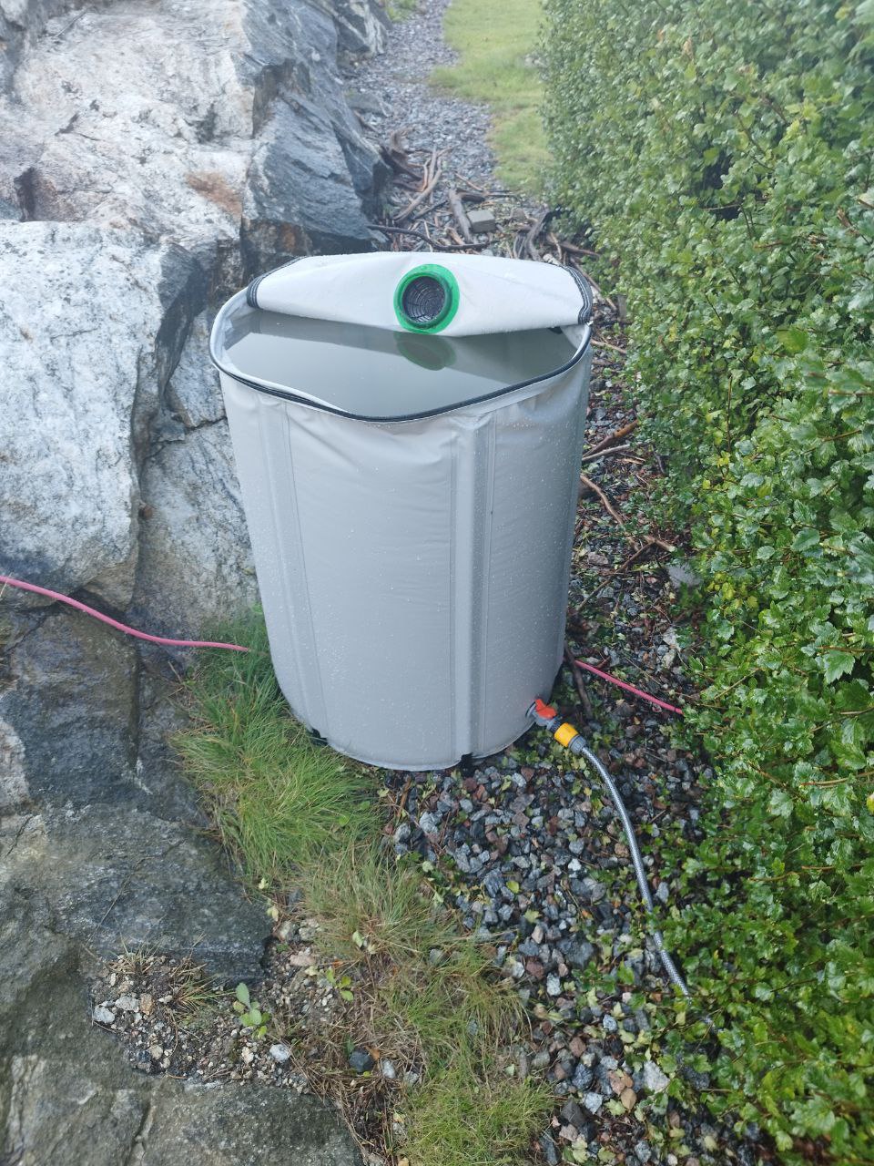 Questo collettore di acqua piovana è progettato per raccogliere l'acqua piovana dalla tua grondaia. Il collettore d'acqua è in grado di raccogliere l'acqua piovana dalle grondaie e inviarla a un serbatoio posizionato il più in alto possibile. Ciò avviene tramite la pressione idrostatica dell'acqua, rendendo possibile l'irrigazione senza pompa. Il collettore d'acqua ha una trappola per foglie che impedisce alle foglie di entrare nel tubo flessibile.