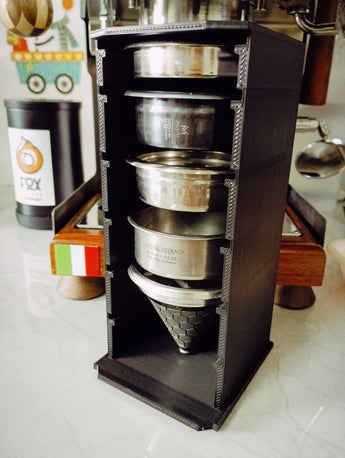 Questo pratico scaffale è progettato per fornire una soluzione di stoccaggio ottimale per i tuoi cestelli filtro da 58 mm. Aiuta a mantenere la tua area caffè ordinata e organizzata, in modo da poter trovare facilmente il cestello filtro giusto quando prepari il tuo espresso preferito. Con i cestelli filtro raggruppati in un unico posto, riduci al minimo il disordine e massimizzi l'efficienza nella tua routine quotidiana del caffè.