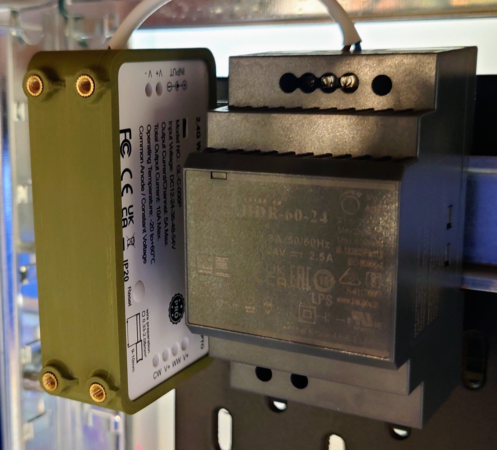 Questo involucro è stato sviluppato specificamente per l'unità di controllo Zigbee Gledopto GL-C-006P. Offre un metodo organizzato e salvaspazio per montare il dispositivo su una guida DIN standard.