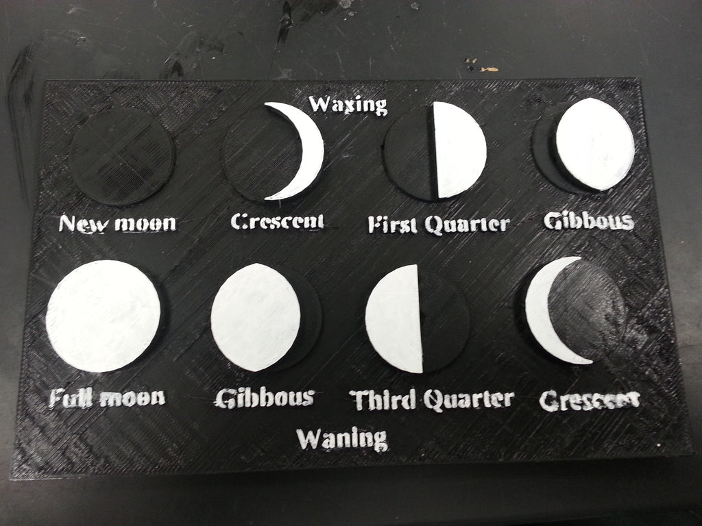 Per l'uso in classe, il modello non finito può essere usato come esercizio per gli studenti per riempire la parte illuminata della luna per ogni fase.