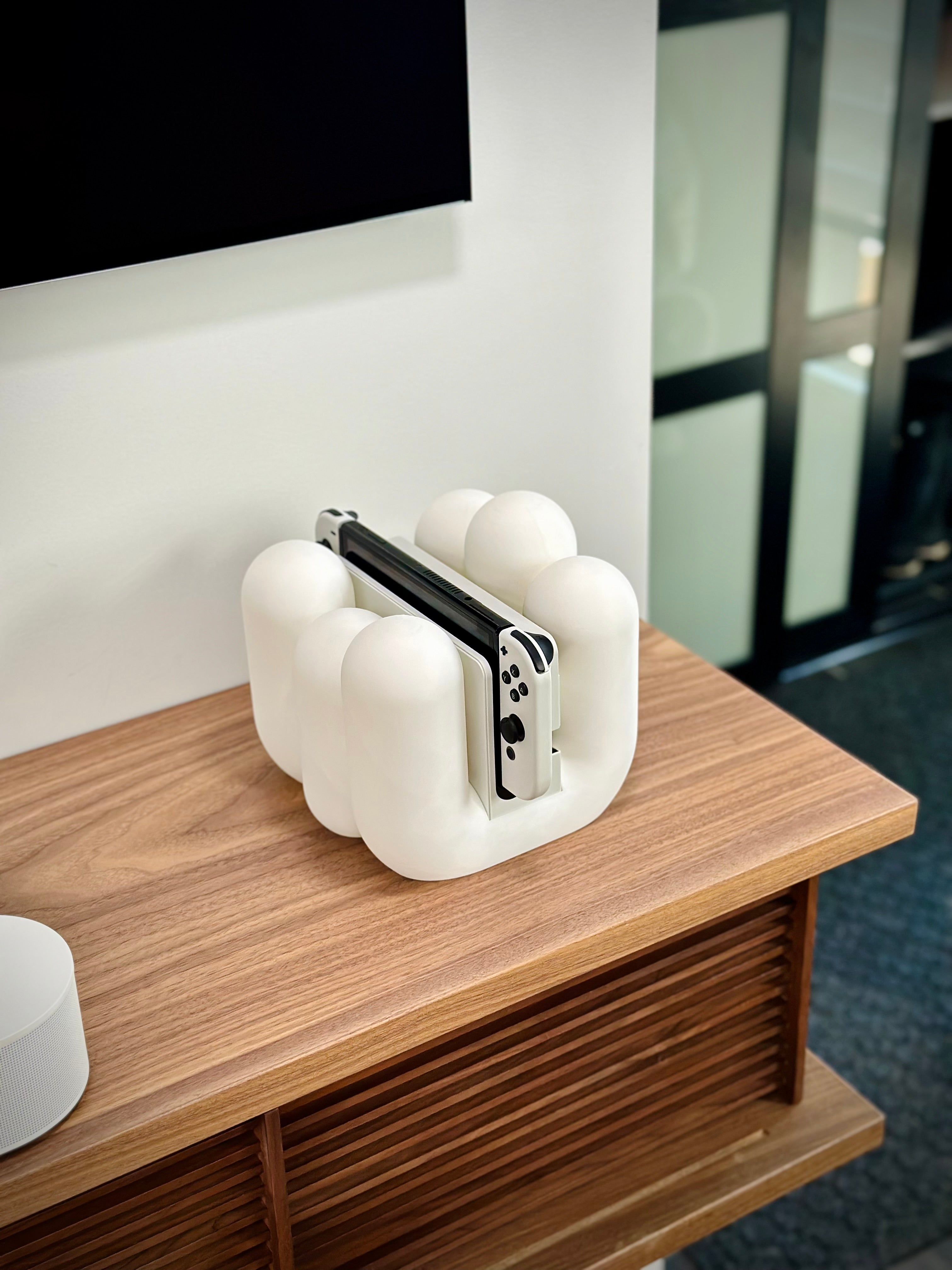 Questa elegante dock per console è progettata per alloggiare con stile la tua Nintendo Switch (sia Classic che OLED). Assicura un flusso d'aria ottimale per prevenire il surriscaldamento durante il gioco. Con una gestione intelligente dei cavi e un facile accesso alle porte USB, questo supporto aiuta a mantenere la tua configurazione di gioco ordinata e organizzata.