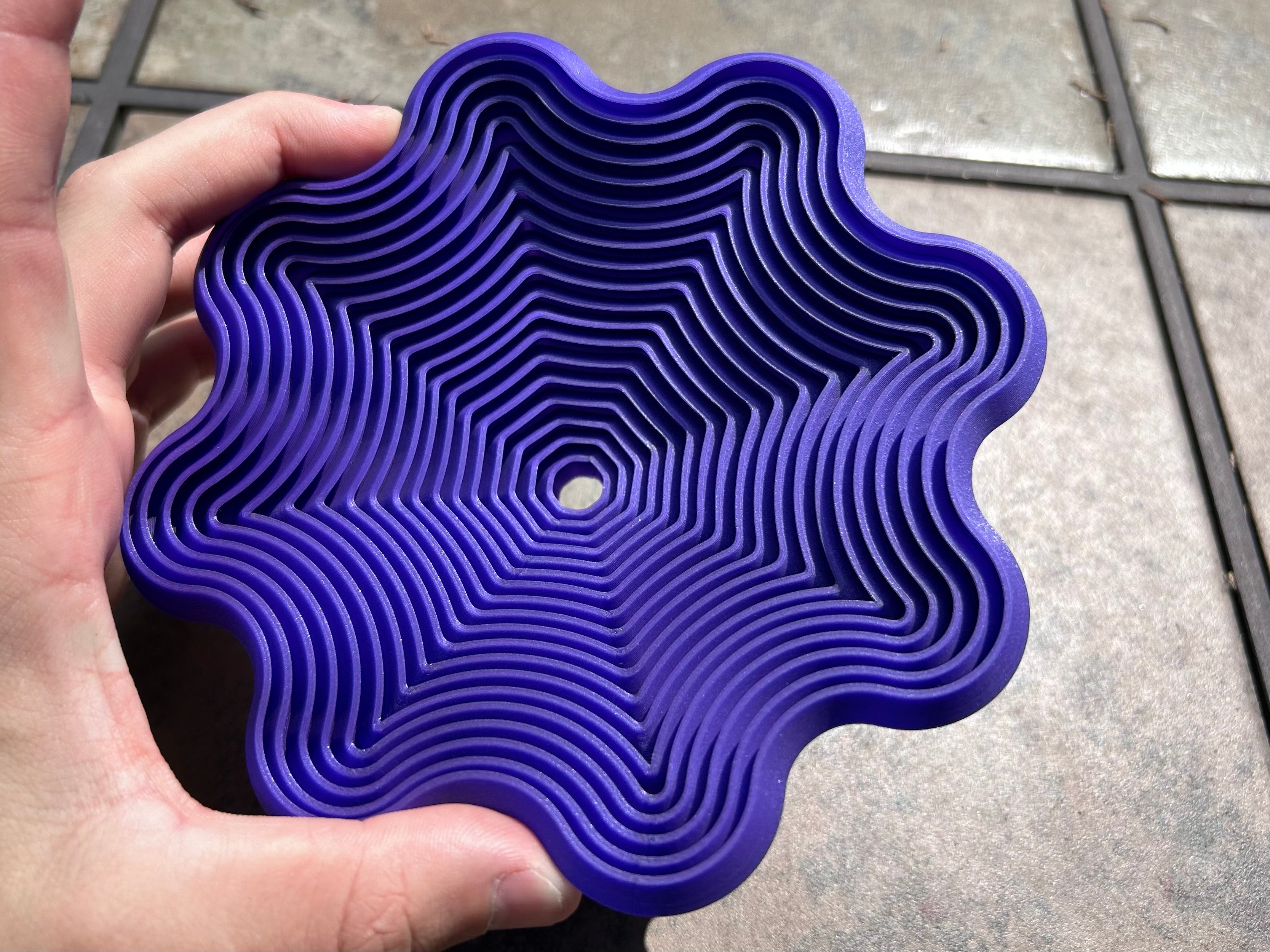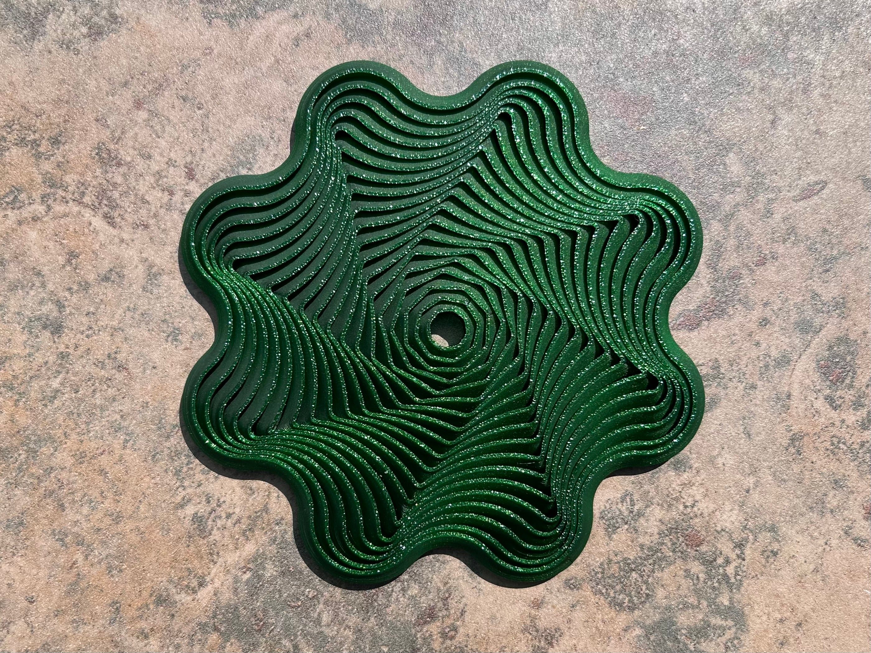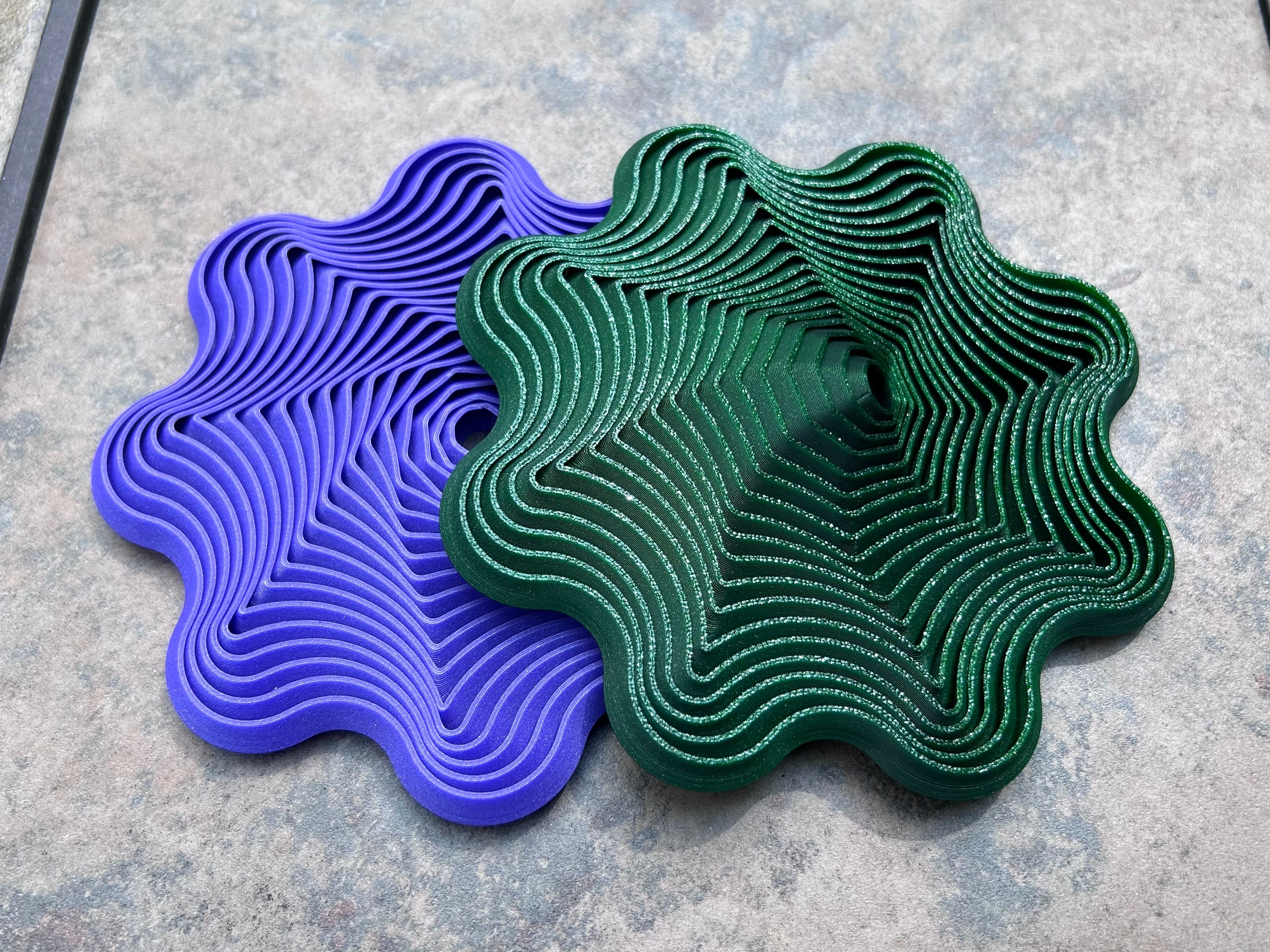 Scopri l'effetto calmante del Wavy Nested Fidget, un fidget toy progettato con un motivo ondulato unico e esteticamente gradevole. Questo fidget offre un'esperienza tattile che cambia gradualmente da onde arrotondate all'esterno a ottagoni al centro, rendendolo sia interessante da vedere che da usare.