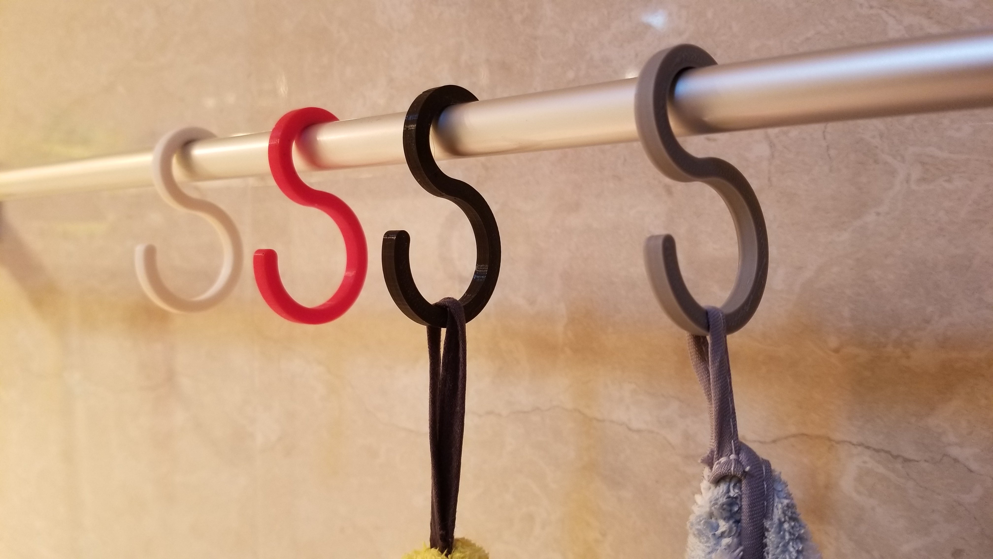 Questi ganci a S personalizzati possono essere adattati alle vostre preferenze. Sono ideali per l'uso in bagno e in cucina e possono essere stampati molto rapidamente senza utilizzare molto materiale.
