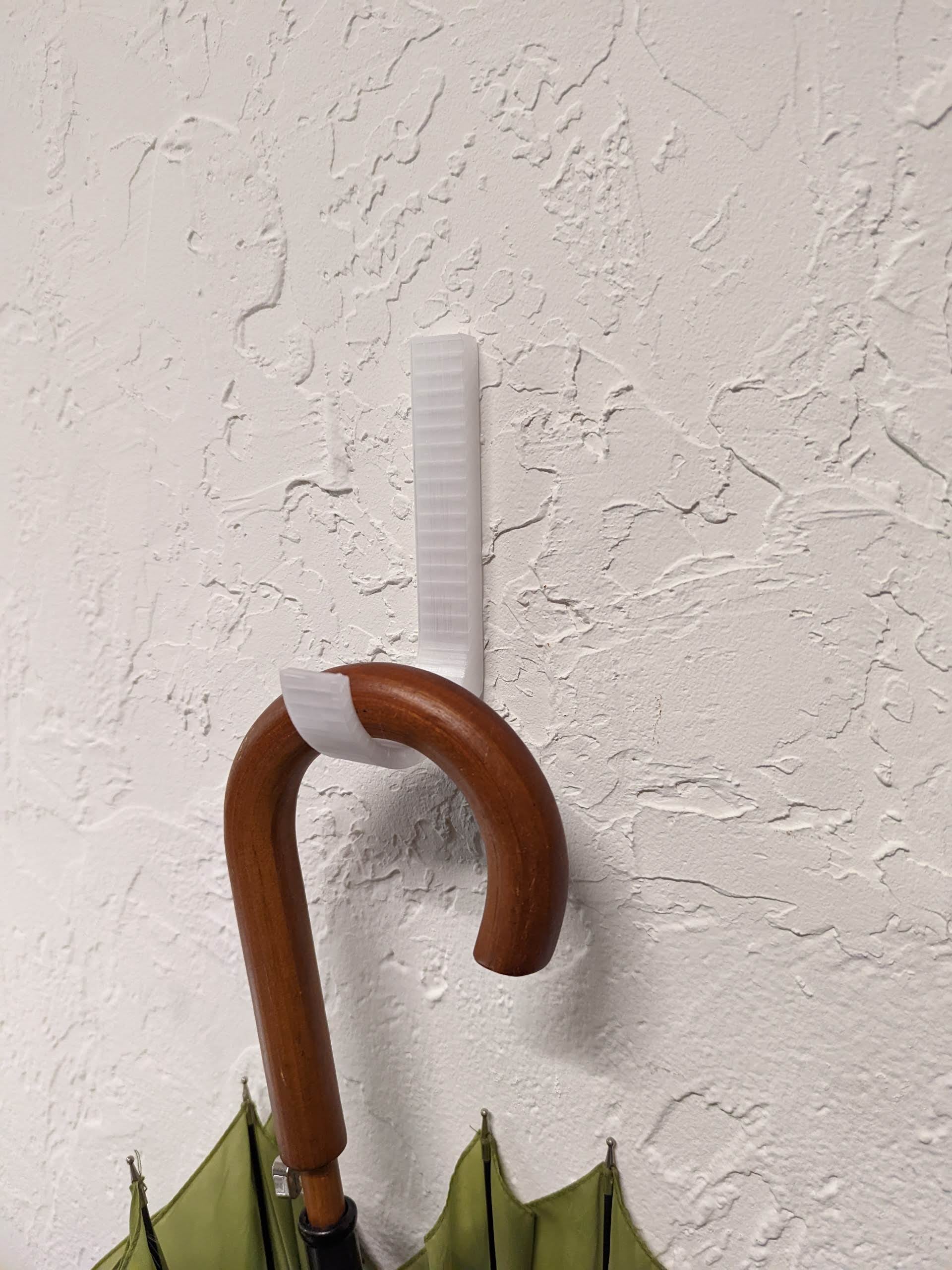 Gancio da parete per appendere oggetti come un ombrello. Questo gancio da parete è stampato in PETG ed è predisposto per essere fissato con i fori interni per le viti.