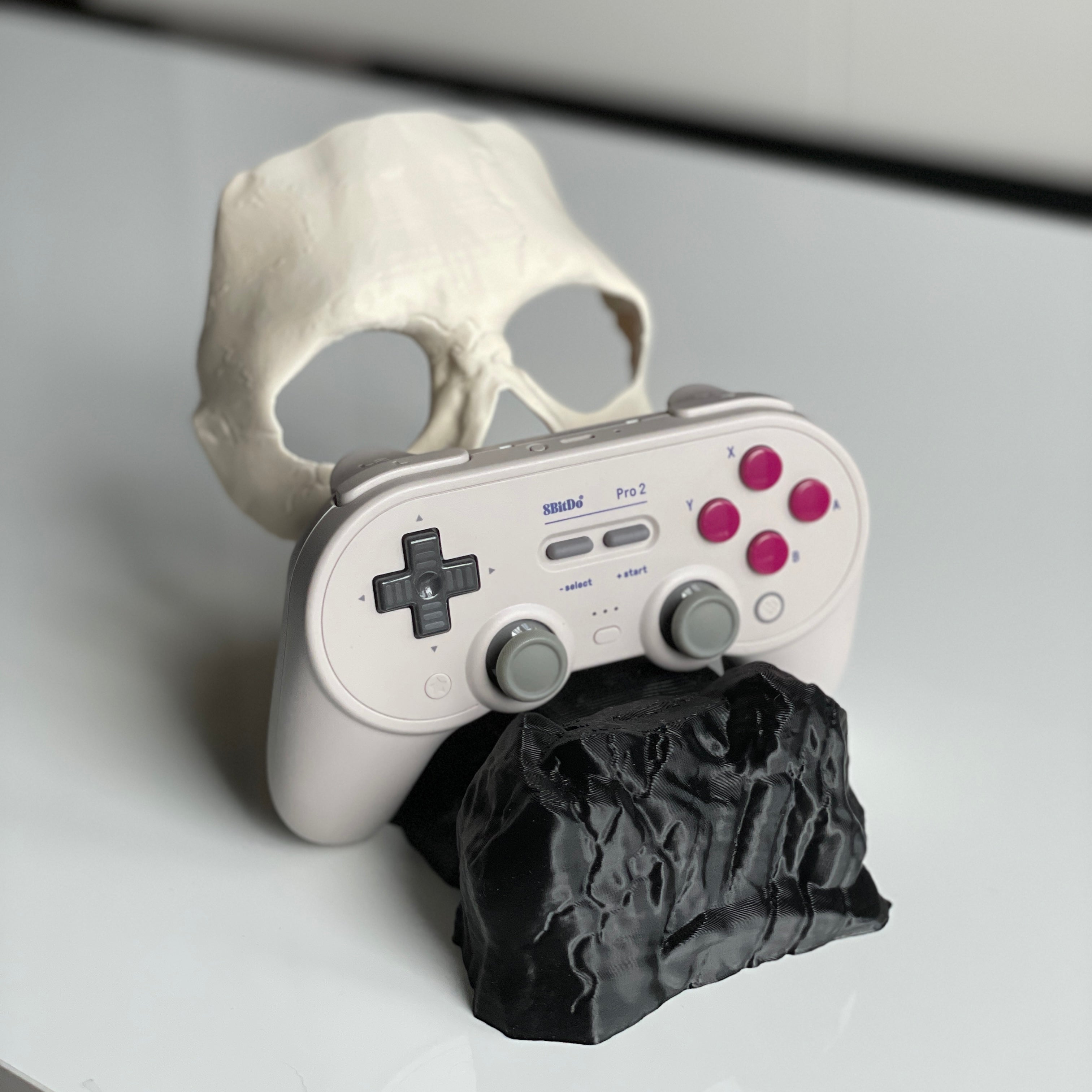 - Il controller poggia su una base simile a una roccia e si appoggia alla maschera Ghost per un look drammatico.