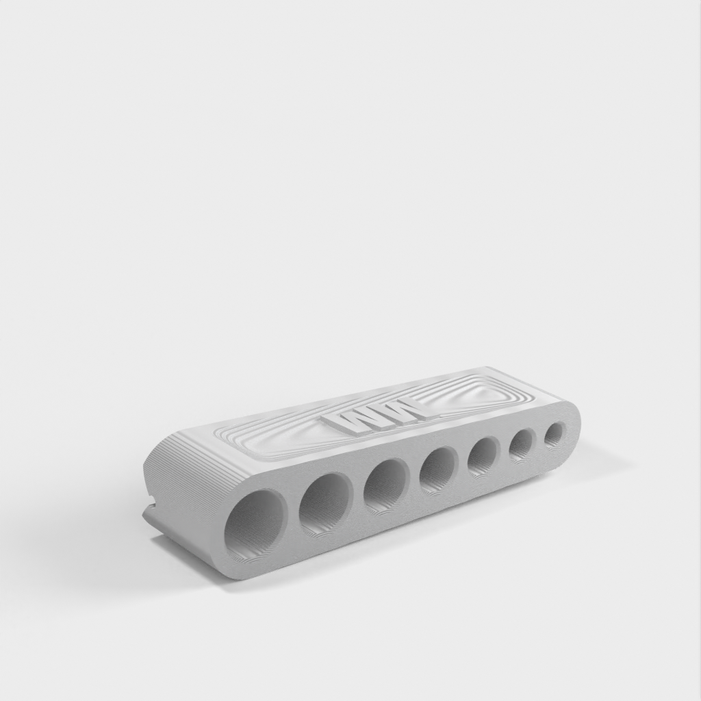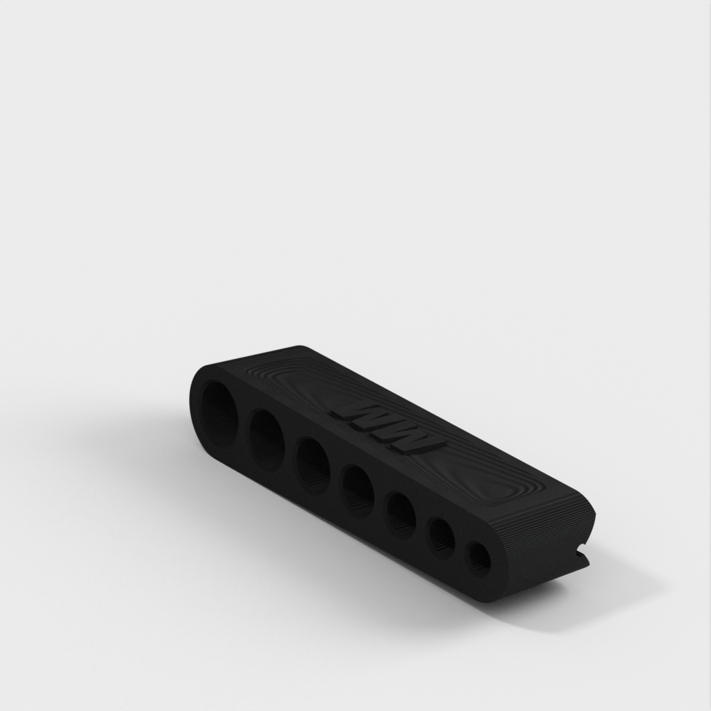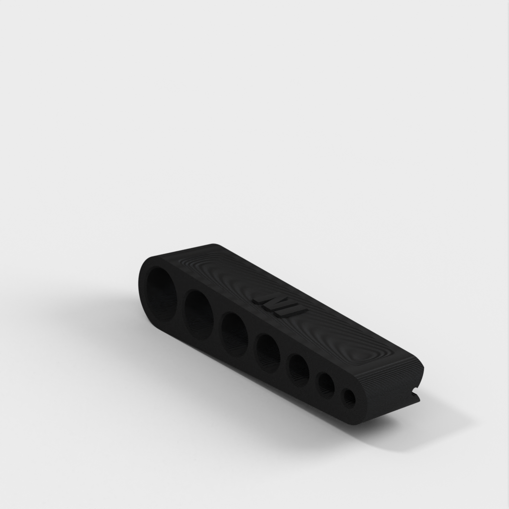 Pratica guida di foratura che consente di ottenere sempre un angolo retto perfetto. La barra di guida include anche un'intelligente scanalatura nella parte inferiore che consente di forare negli angoli o nei cilindri.