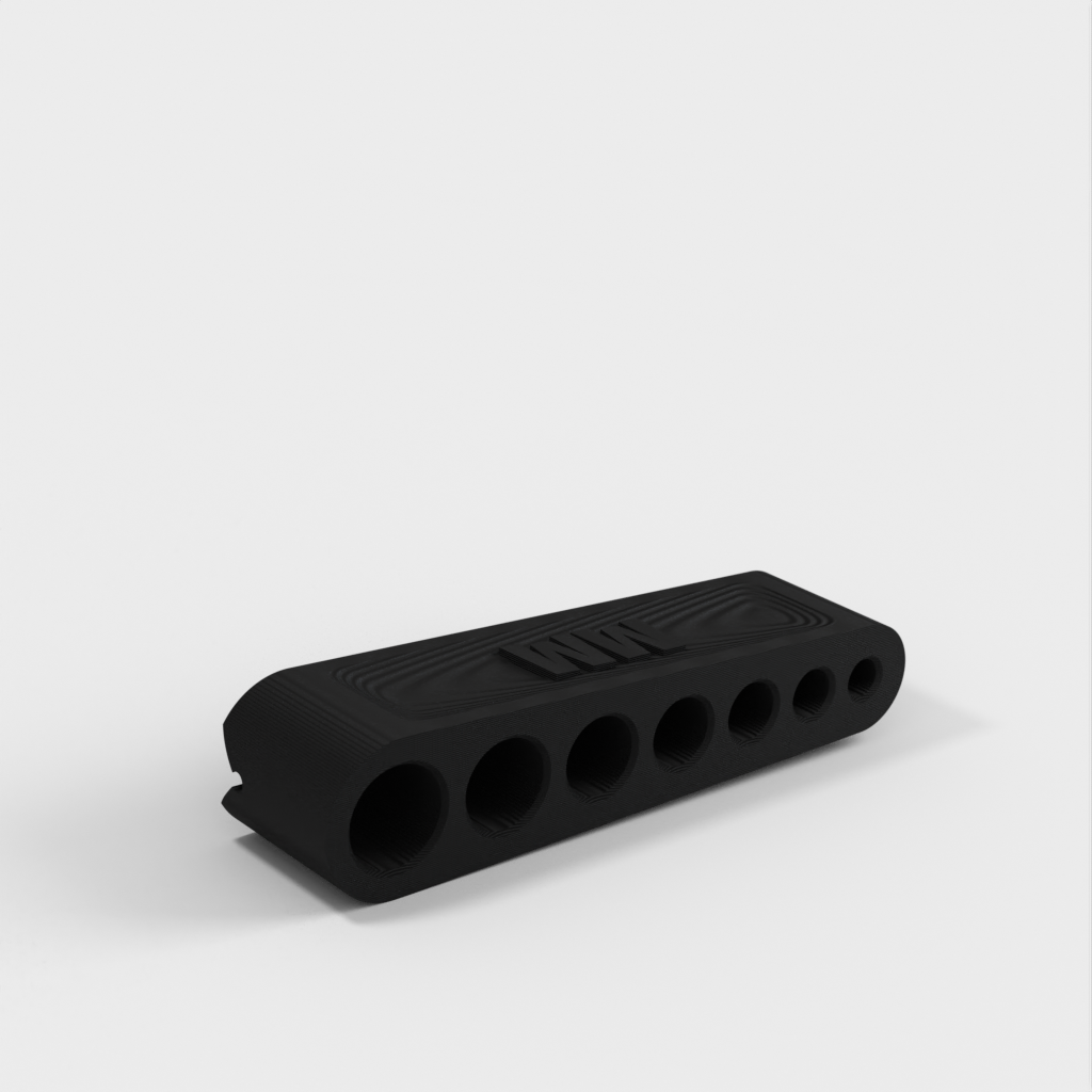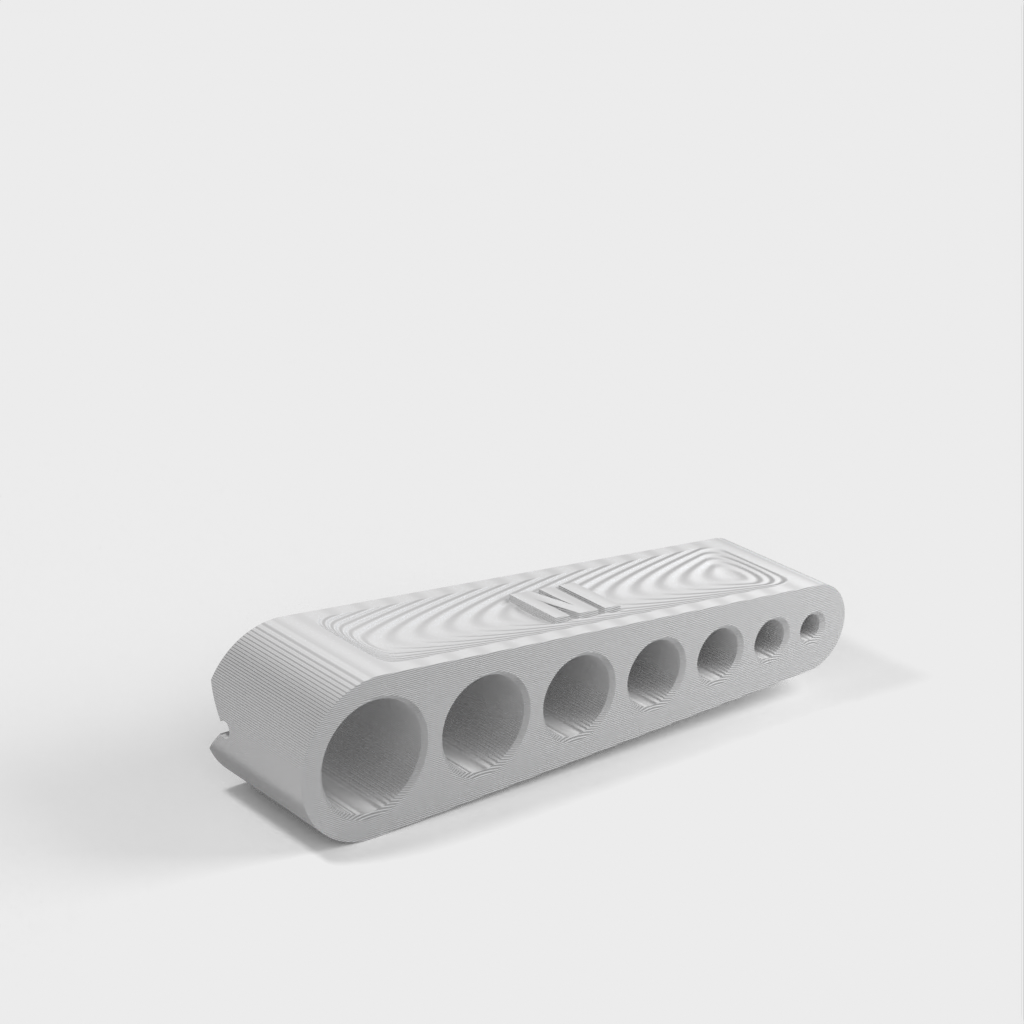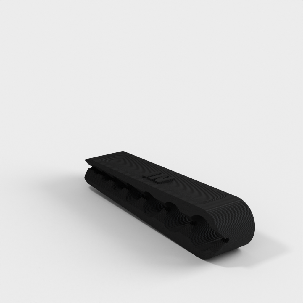 Pratica guida di foratura che consente di ottenere sempre un angolo retto perfetto. La barra di guida include anche un'intelligente scanalatura nella parte inferiore che consente di forare negli angoli o nei cilindri.