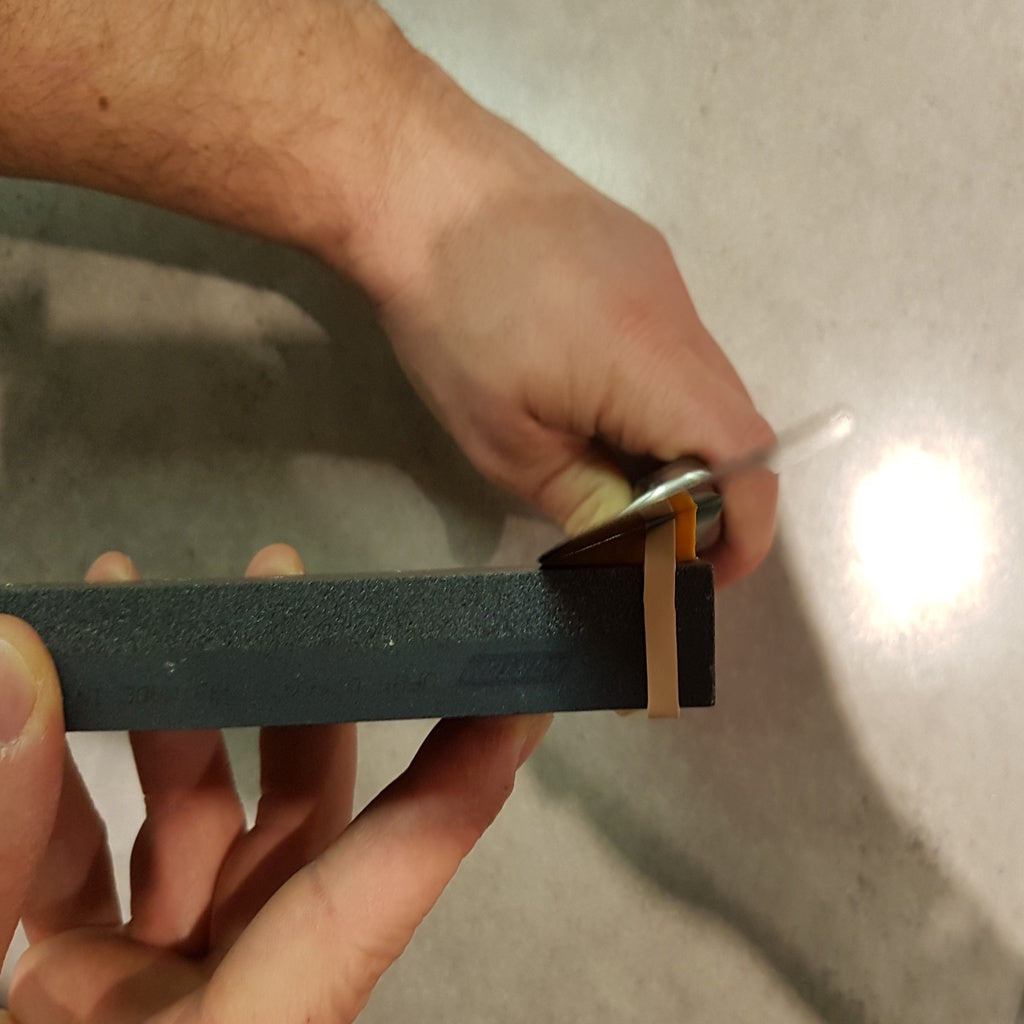Guida angolare a 15° e 20° per pietra per affilare coltelli. Questa guida può essere posizionata all'estremità della pietra per affilare, garantendo l'angolazione perfetta ogni volta che si affilano i coltelli.