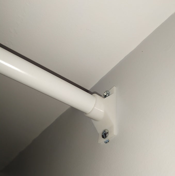 Il supporto è progettato per i bastoni per tende Ikea RÄCKA. Ciò significa che puoi montare il tuo bastone per tende senza bisogno di viti. Basta inserire l'asta nel supporto ed è saldamente in posizione.