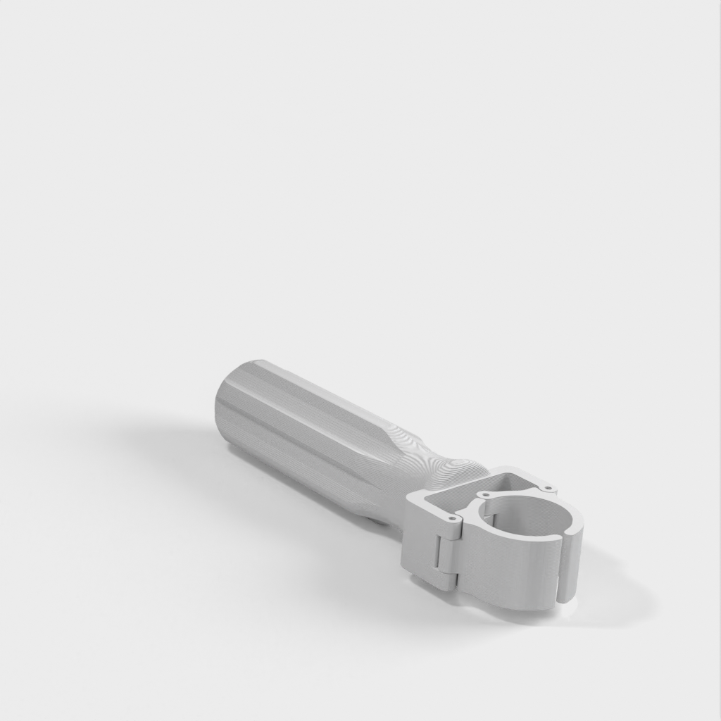 Vengono fornite due misure di clip per lavorare con i normali manici di scopa in legno (25 mm) e con i manici di scopa in plastica di diametro inferiore (21 mm).
