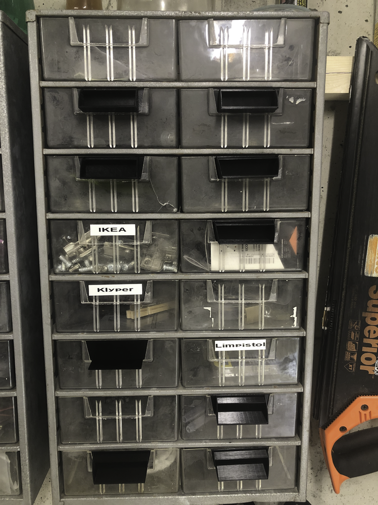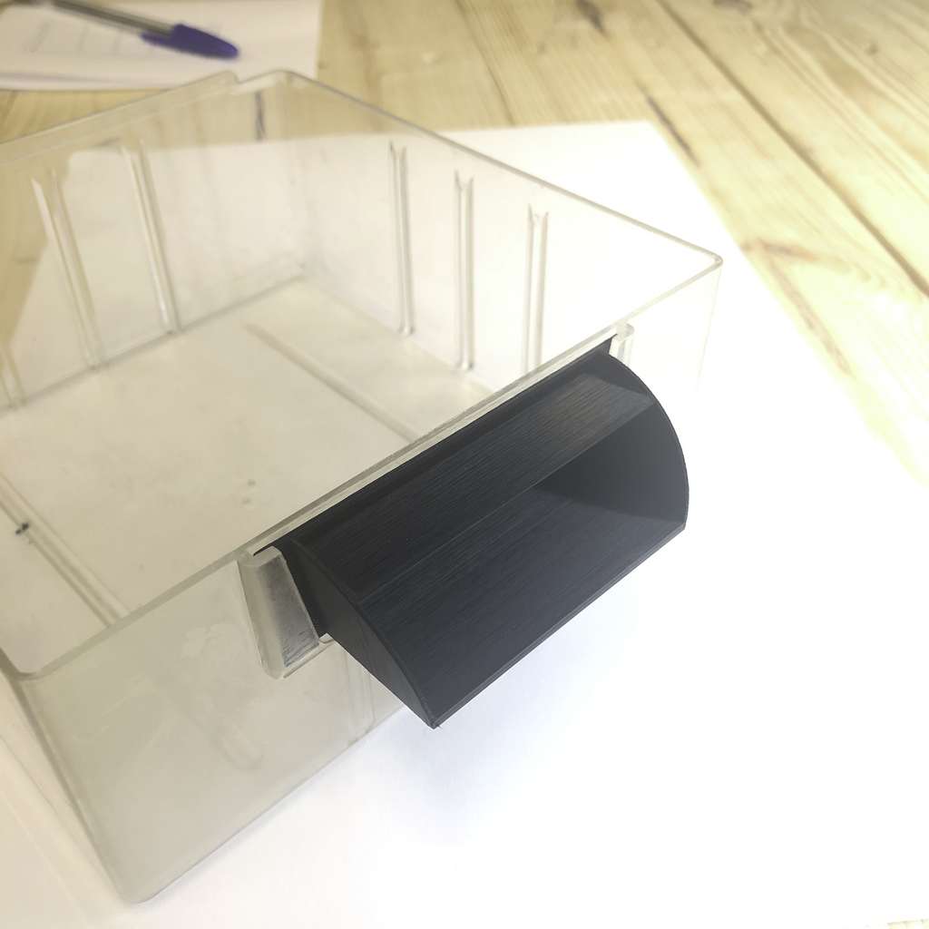 Nuove maniglie per la vostra cassettiera raaco. Si inseriscono perfettamente nella fessura destinata alle scanalature e sono stampate con una larghezza di 75 mm. Le maniglie hanno un riempimento del 100%. Con queste nuove maniglie, le vostre cassettiere raaco sembreranno quasi nuove e saranno molto più facili da utilizzare.