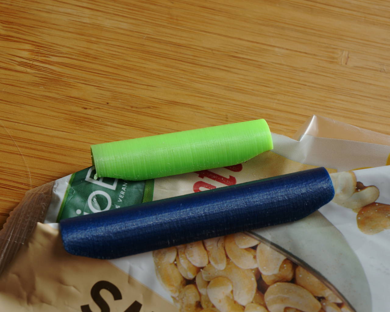 La Bag Clip è un pratico strumento per sigillare i sacchetti di cibo e mantenere il contenuto fresco. È flessibile grazie al materiale PETg e può essere personalizzato in diverse lunghezze. Per utilizzarlo, basta piegare il sacchetto e spingere la piega attraverso la fessura. Per aprirlo, basta tirarlo via. È la soluzione ideale per sigillare patatine, dolciumi e altri sacchetti per alimenti.
