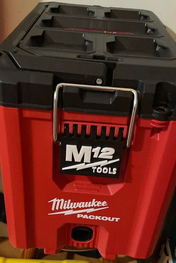 Serratura Milwaukee Packout con logo M12 per cassetta degli attrezzi compatta