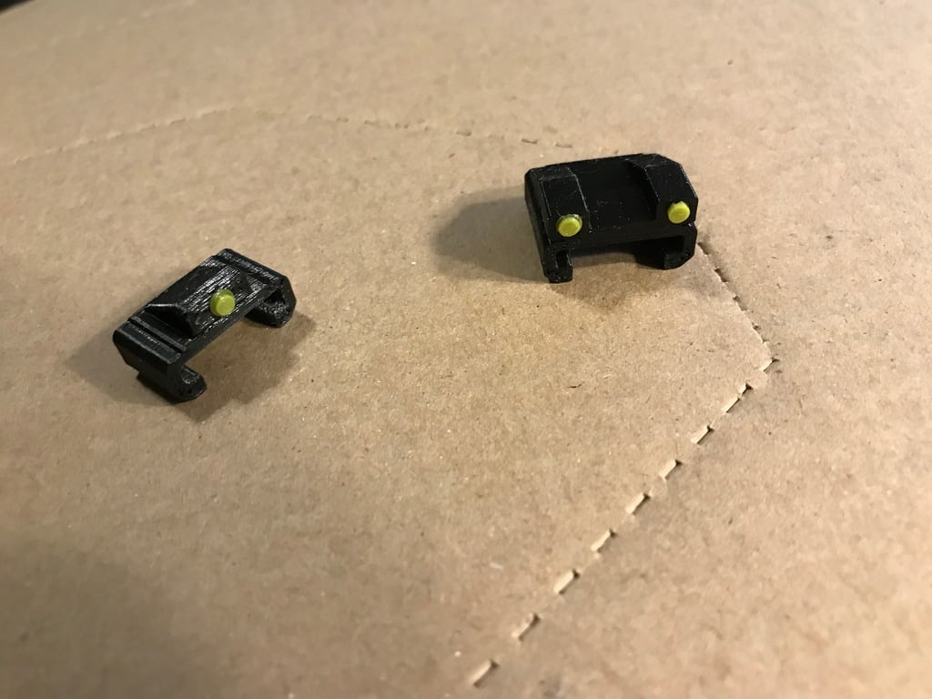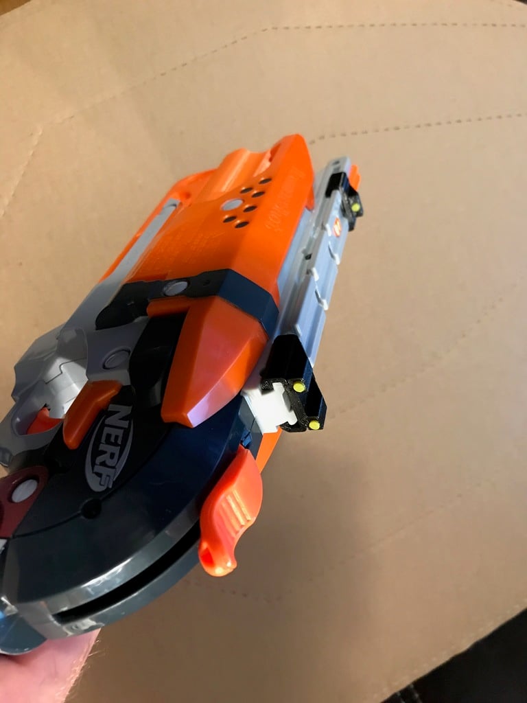 Semplice set di mirini 3Dot (anteriore e posteriore) per armi Nerf, facile da montare.