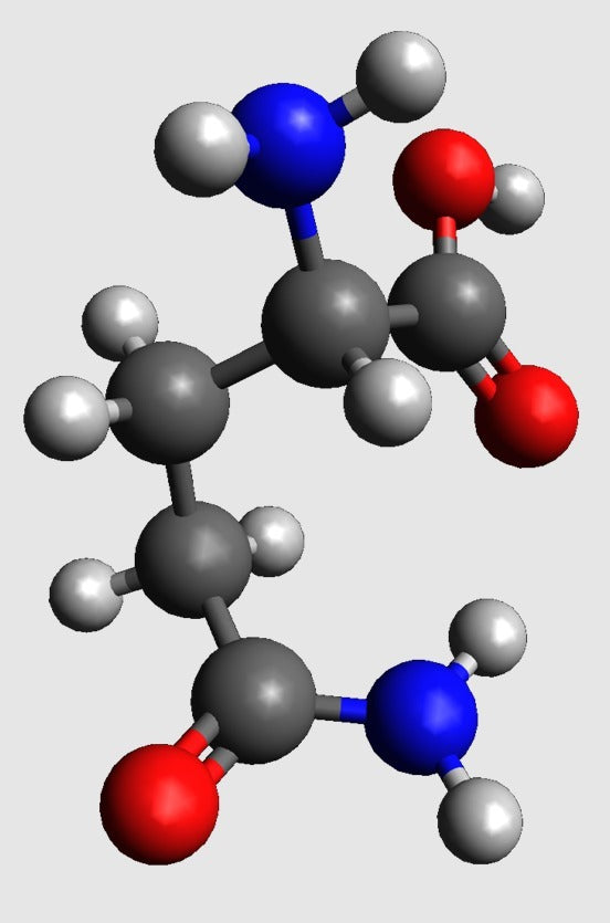 Modello molecolare della glutammina su scala atomica. Il modello è impermeabile, pieghevole e 3D-friendly STL. La glutammina fa parte di molte proteine e può essere paragonata al glucosio e ai carboidrati per illustrare il motivo per cui sono necessari diversi tipi di alimenti per ottenere tutti gli elementi di cui il corpo ha bisogno. Questo modello è particolarmente utile per l'insegnamento della chimica.