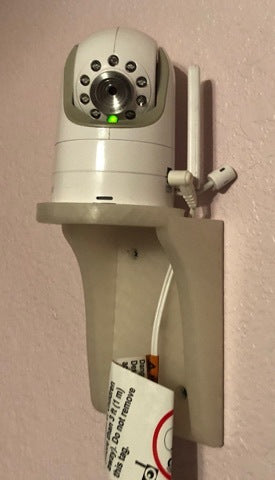 Per mantenere un'installazione ordinata, sono presenti ritagli nell'anello per il cavo di alimentazione, il microfono e l'antenna. Sebbene il cavo di alimentazione richieda una leggera angolazione durante l'installazione, garantisce una finitura aderente e discreta. Questo supporto a parete offre un modo pratico e salvaspazio per integrare la tua fotocamera in casa.