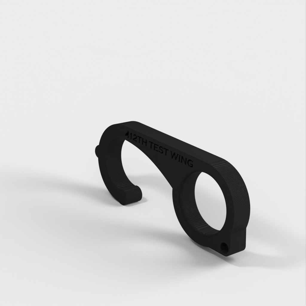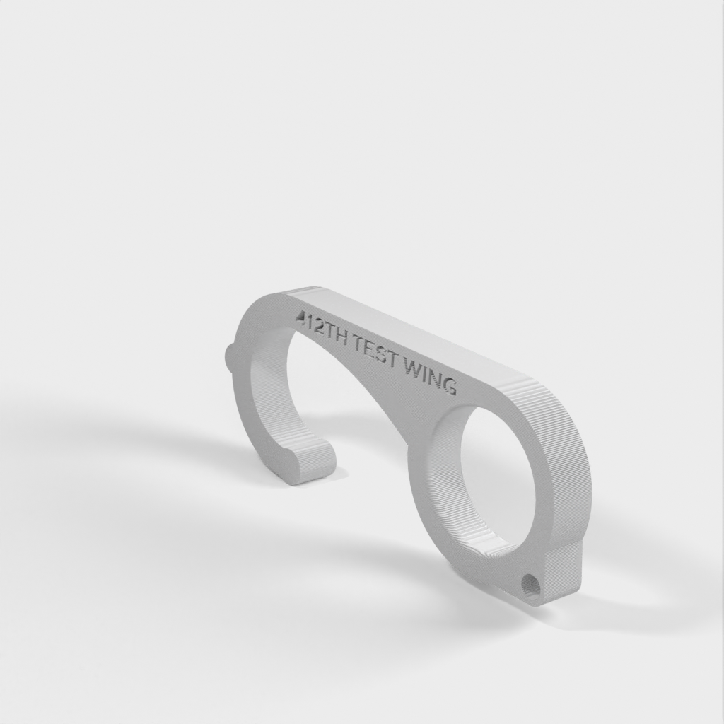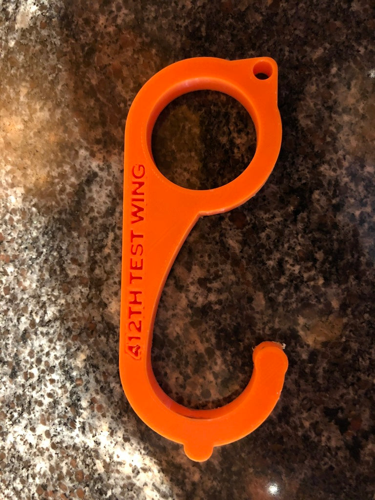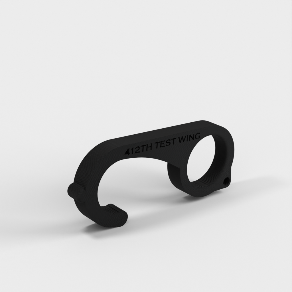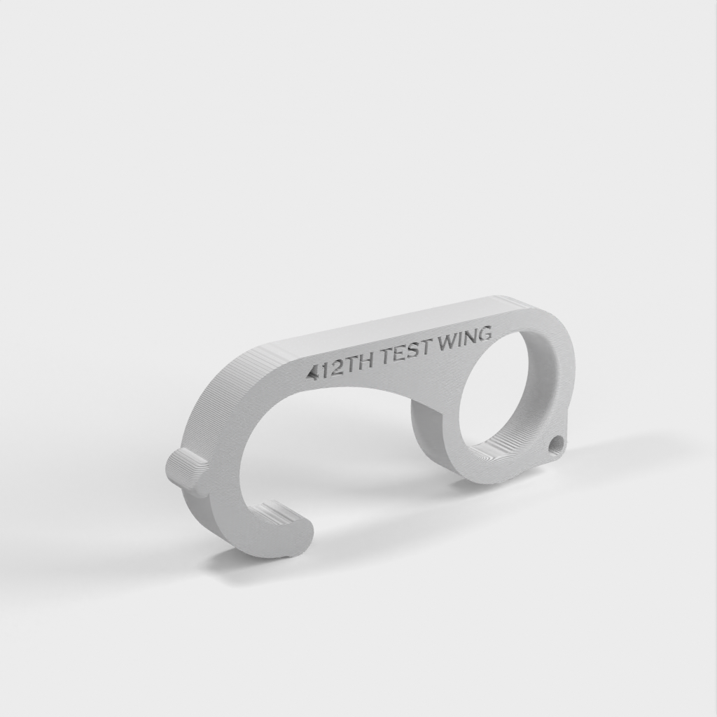 Gancio no-touch realizzato dal 412° Stormo Test della Base Aerea di Edwards. Questo gancio è stato testato su una varietà di porte diverse e l'attuale iterazione del design non ha ancora fallito.