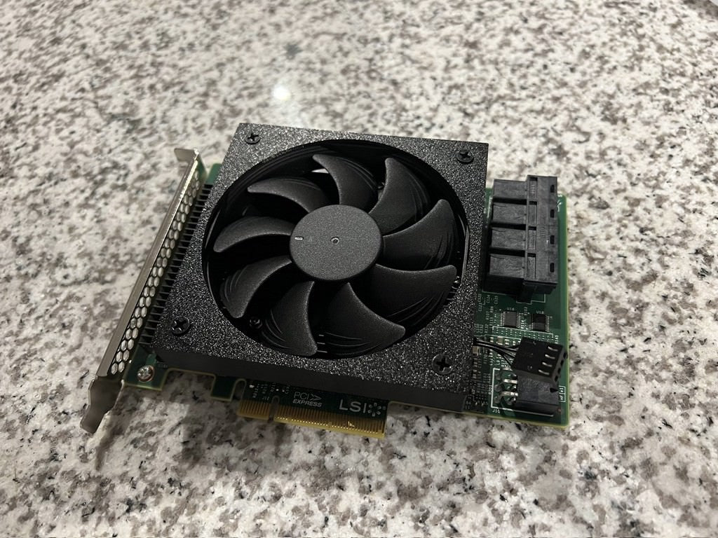 Migliora le prestazioni di raffreddamento della tua LSI 9300-16i con questo carter per ventole Noctua NF-A9x14 progettato su misura. Questo carter per ventole è specificamente adattato per la scheda LSI 9300-16i, consentendo un'efficace dissipazione del calore grazie all'utilizzo di una ventola Noctua NF-A9x14 HS-PWM di alta qualità. Montando questo carter, puoi gestire efficacemente il calore generato dall'HBA, garantendo temperature operative ottimali per il tuo sistema.