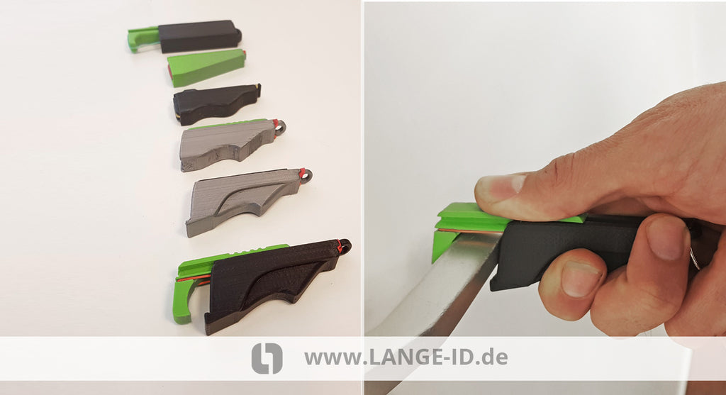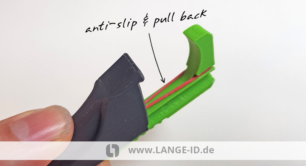 Oltre ad aprire le porte, la parte anteriore del gancio può essere utilizzata anche per premere i pulsanti negli spazi pubblici. L'anello di gomma sul gancio garantisce lo scorrimento sulla maniglia e ne impedisce la caduta.