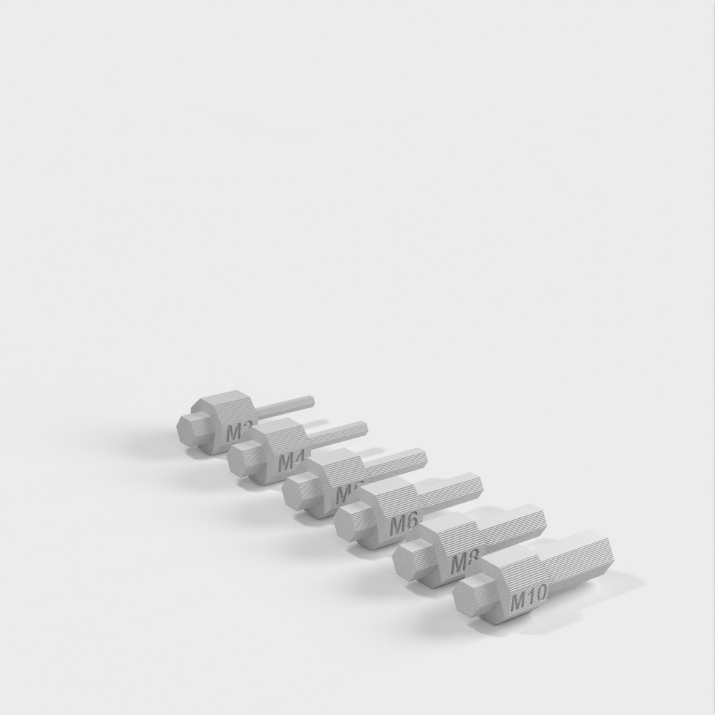 Set di chiavi a brugola, OMT², in misure metriche da M3 a M10. Questo set è compatibile con qualsiasi portabit standard e/o impugnatura OMT². Il set contiene le 6 chiavi a brugola più utilizzate. Il vantaggio di questo set è che è compatto, facile da riporre e da usare. Il set è utile in molte situazioni in cui si ha bisogno di una chiave a brugola. Tenete presente che questo set non sostituirà mai completamente un set di chiavi a brugola in metallo, ma può essere utile in alcuni casi.