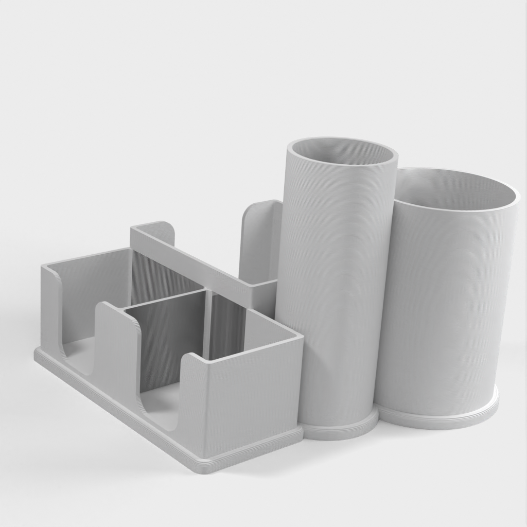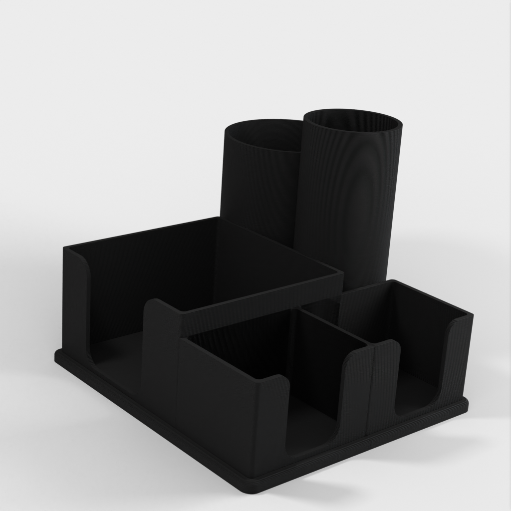 Questo organizer da scrivania è uno scomparto ideale per riporre penne e matite e può contenere anche due formati diversi di Post-It. È una soluzione semplice per mantenere la scrivania in ordine e organizzata.