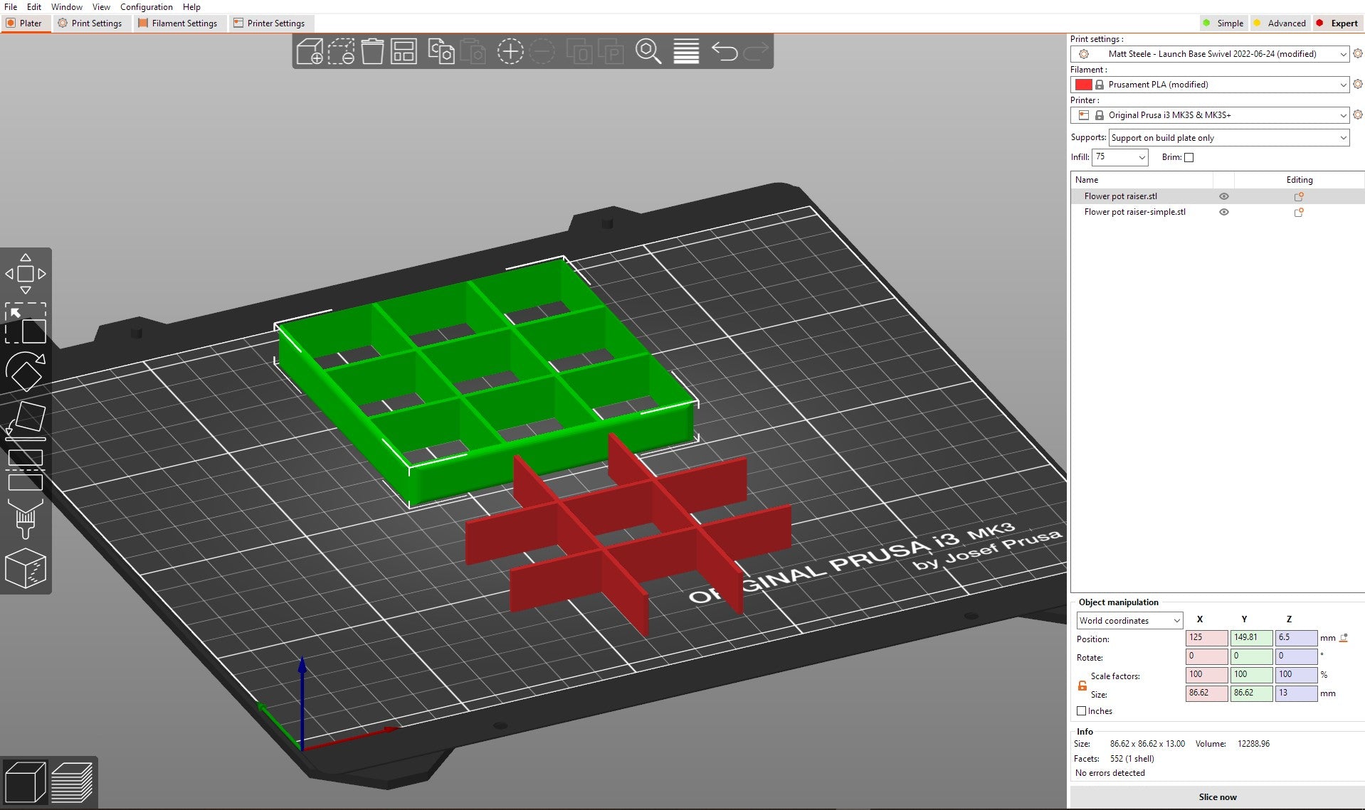 Il sollevatore di vasi per piante è una versione semplice, senza il solito limite, ma altrettanto efficace. Con questo prodotto è possibile regolare facilmente le dimensioni X, Y e Z per adattarsi al contenitore dell'albero e decidere quanto in alto sollevare il vaso della pianta. Non ci sono strutture di supporto, utilizzate 4 o 5 perimetri per evitare il rumore del riempimento. Altezza dello strato di 0,2 mm o più - nessuno lo vedrà nel contenitore del vaso di fiori.