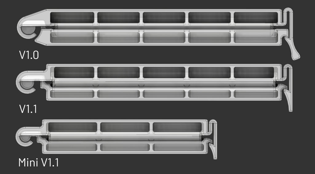 Nel 2021 è stata aggiunta una versione mini che ha un'area di serraggio di 68 mm di larghezza, utilizza circa il 50% di materiale in meno rispetto alla V1.1 e serra più strettamente (cavità di 0,25 mm rispetto a 0,5 mm) per sigillare in modo più efficace i sacchetti piccoli e sottili.