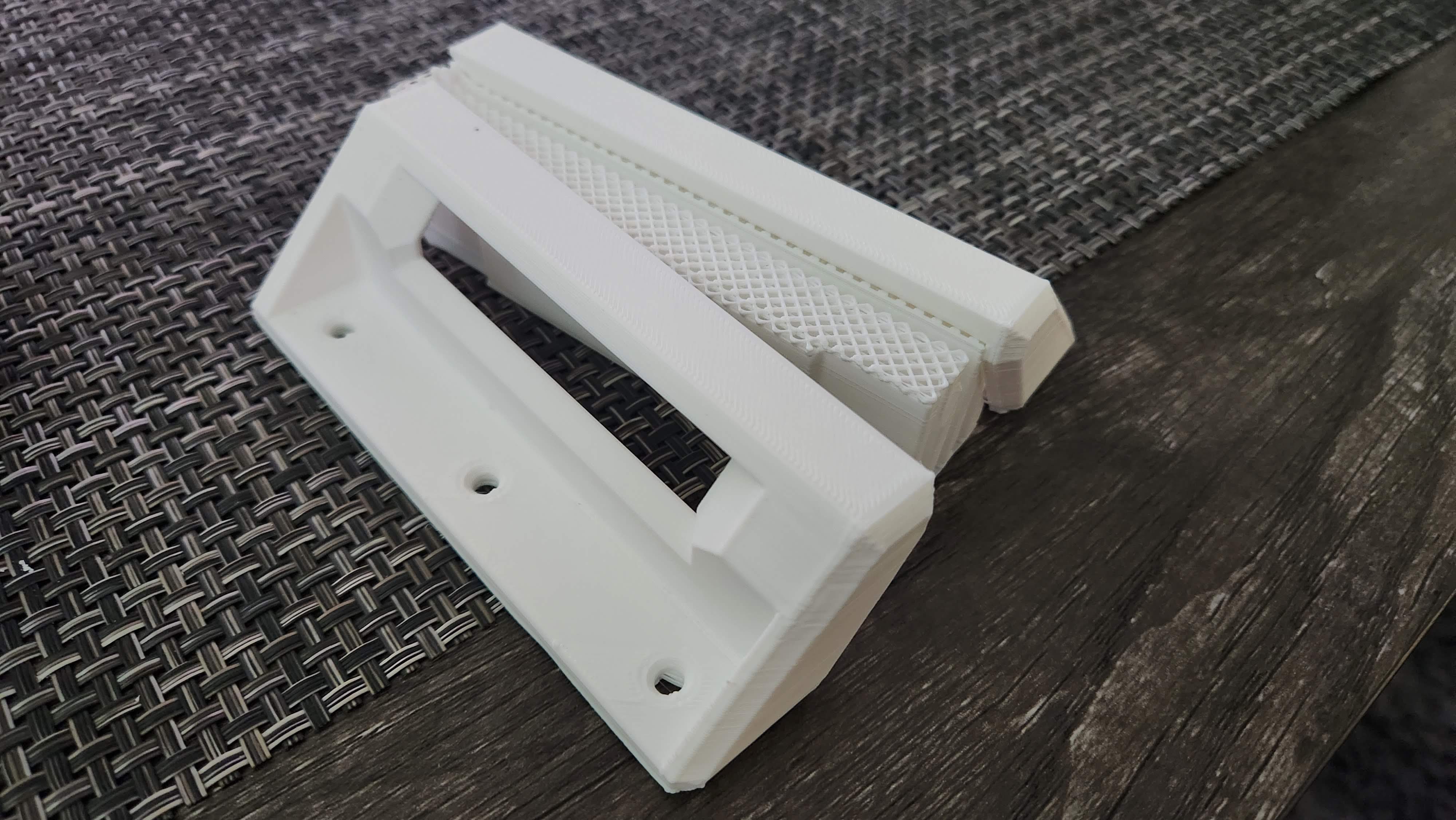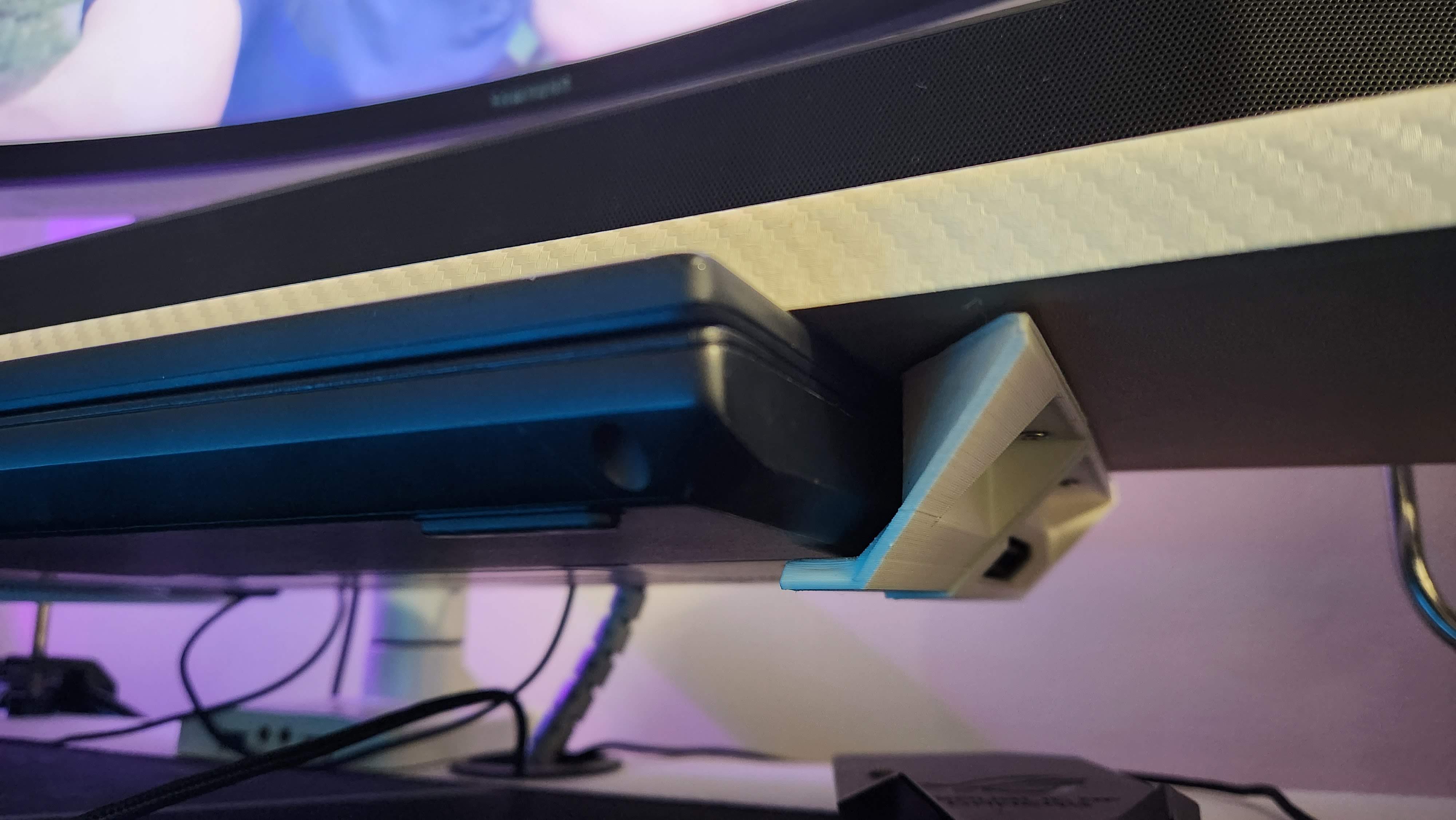 Per garantire la piena funzionalità, la staffa è progettata in due sezioni separate, che consentono un accesso senza ostacoli alle porte USB laterali del laptop. La forma sagomata segue il profilo laterale del laptop e le nervature di supporto integrate aumentano la rigidità e la stabilità. Un fermo posteriore integrato impedisce che il laptop scivoli accidentalmente fuori dalla staffa quando è montato.