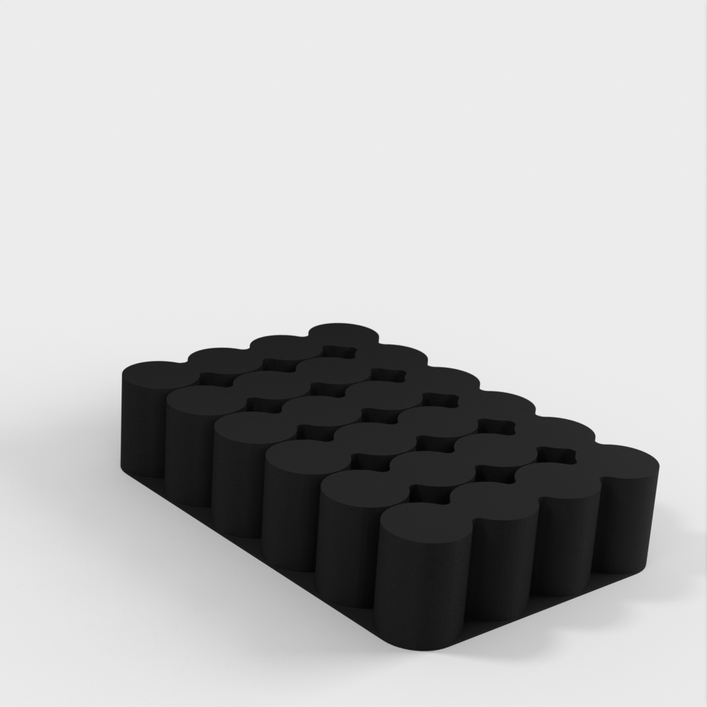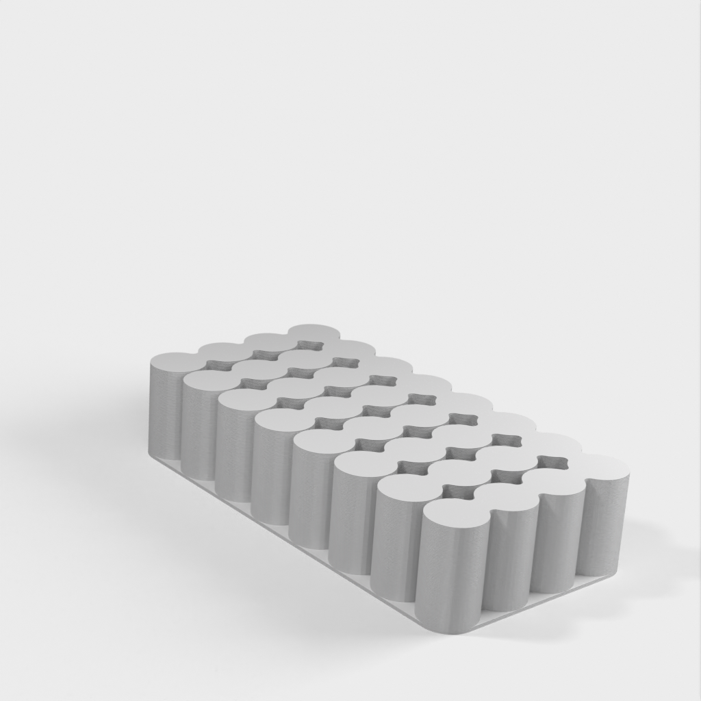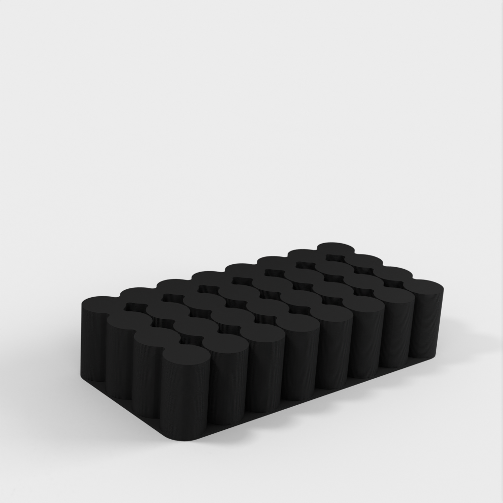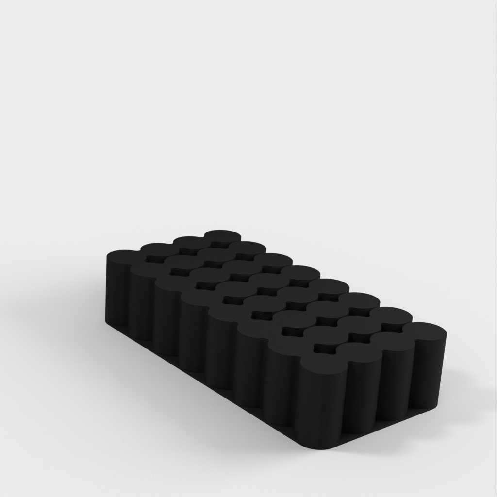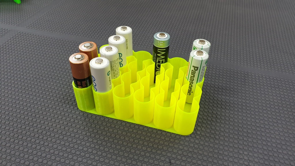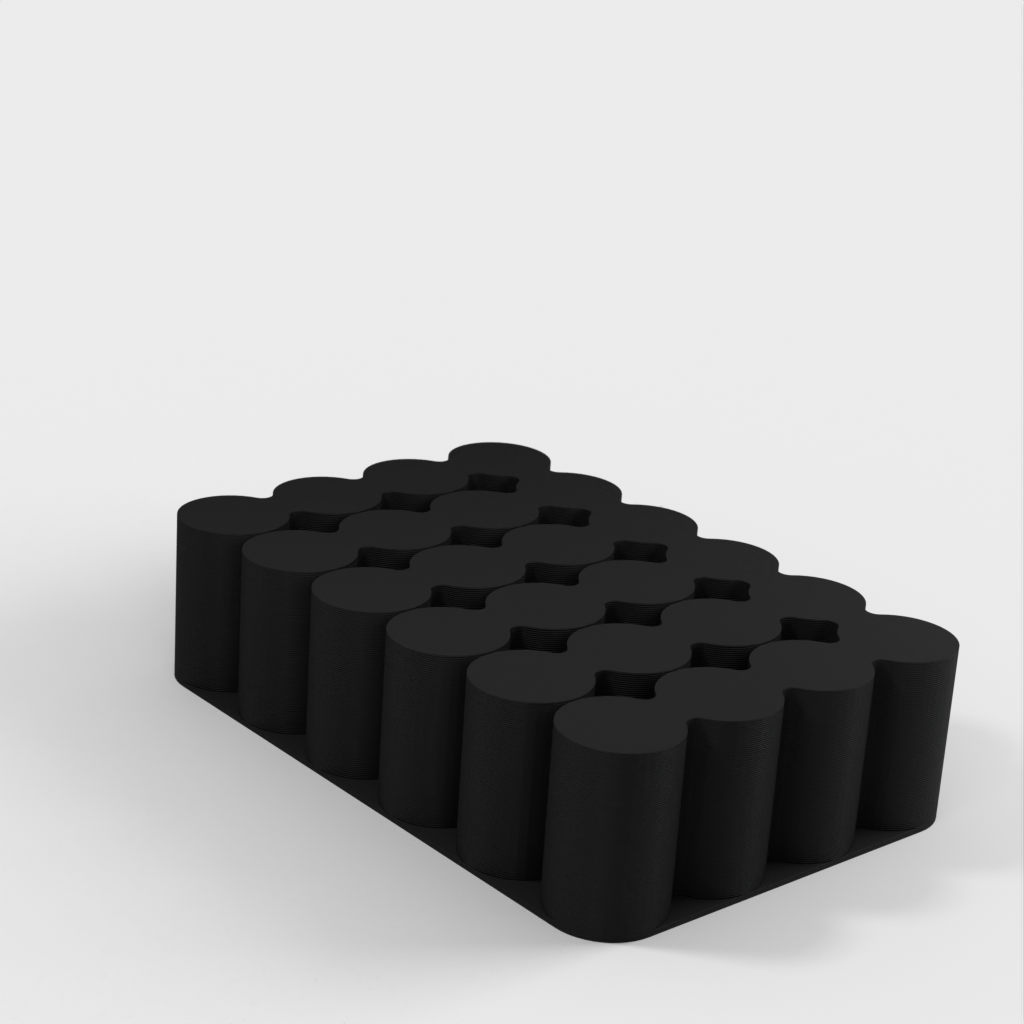 Tieni traccia delle tue batterie con questo portabatterie per batterie AA, AAA, 18650 e 9V. Il contenitore per AA contiene 24 batterie, AAA 32, 18650 24 e 9V 10. È possibile stamparli in qualsiasi materiale, ma in questo caso sono stampati in PLA. Se avete bisogno di un supporto per batterie di dimensioni diverse o con più slot, lasciate un commento e verrà caricata una nuova versione.