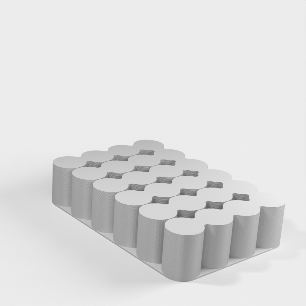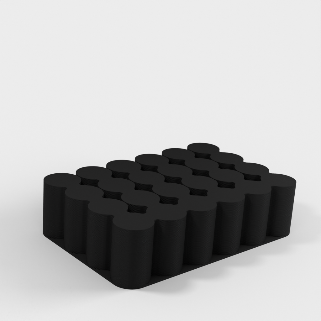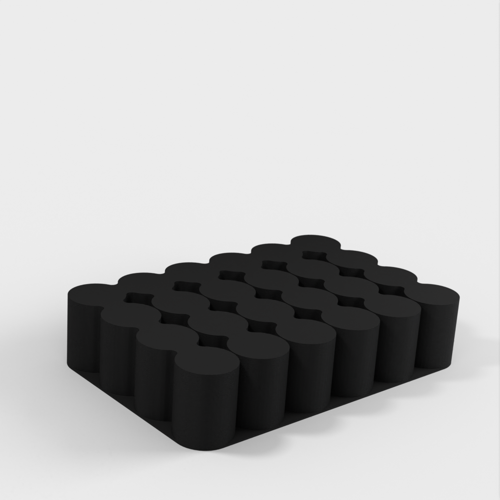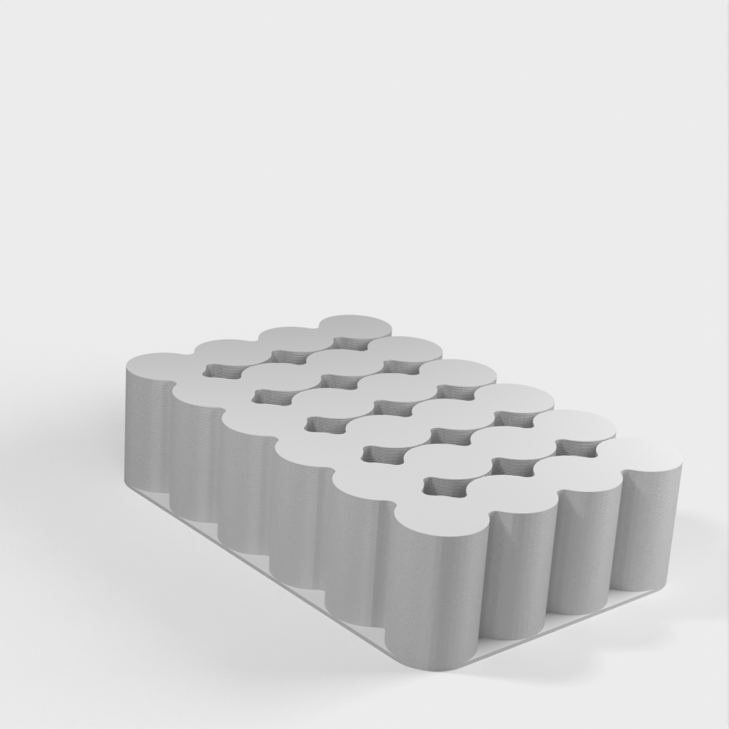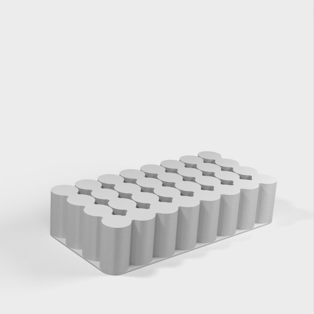 Tieni traccia delle tue batterie con questo portabatterie per batterie AA, AAA, 18650 e 9V. Il contenitore per AA contiene 24 batterie, AAA 32, 18650 24 e 9V 10. È possibile stamparli in qualsiasi materiale, ma in questo caso sono stampati in PLA. Se avete bisogno di un supporto per batterie di dimensioni diverse o con più slot, lasciate un commento e verrà caricata una nuova versione.