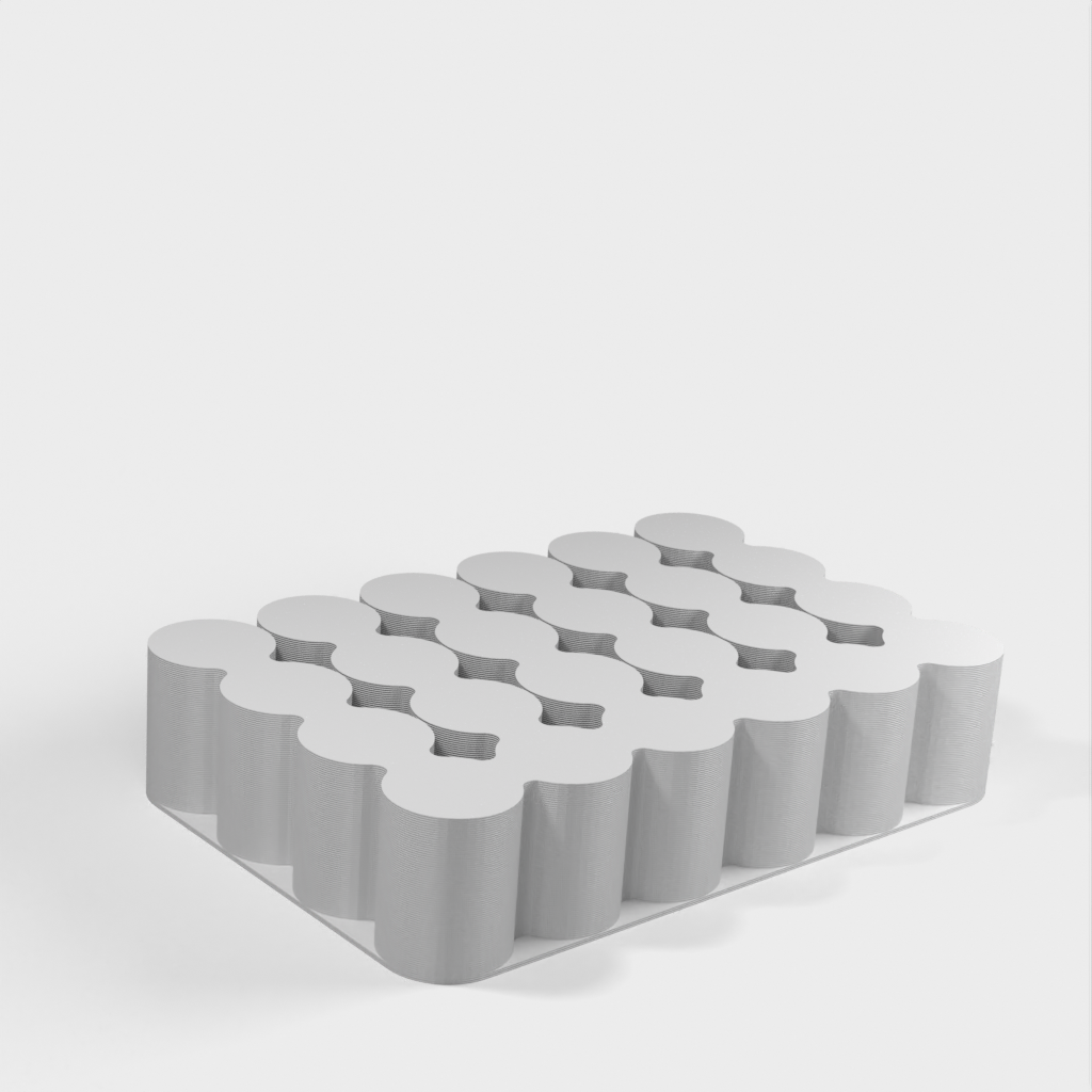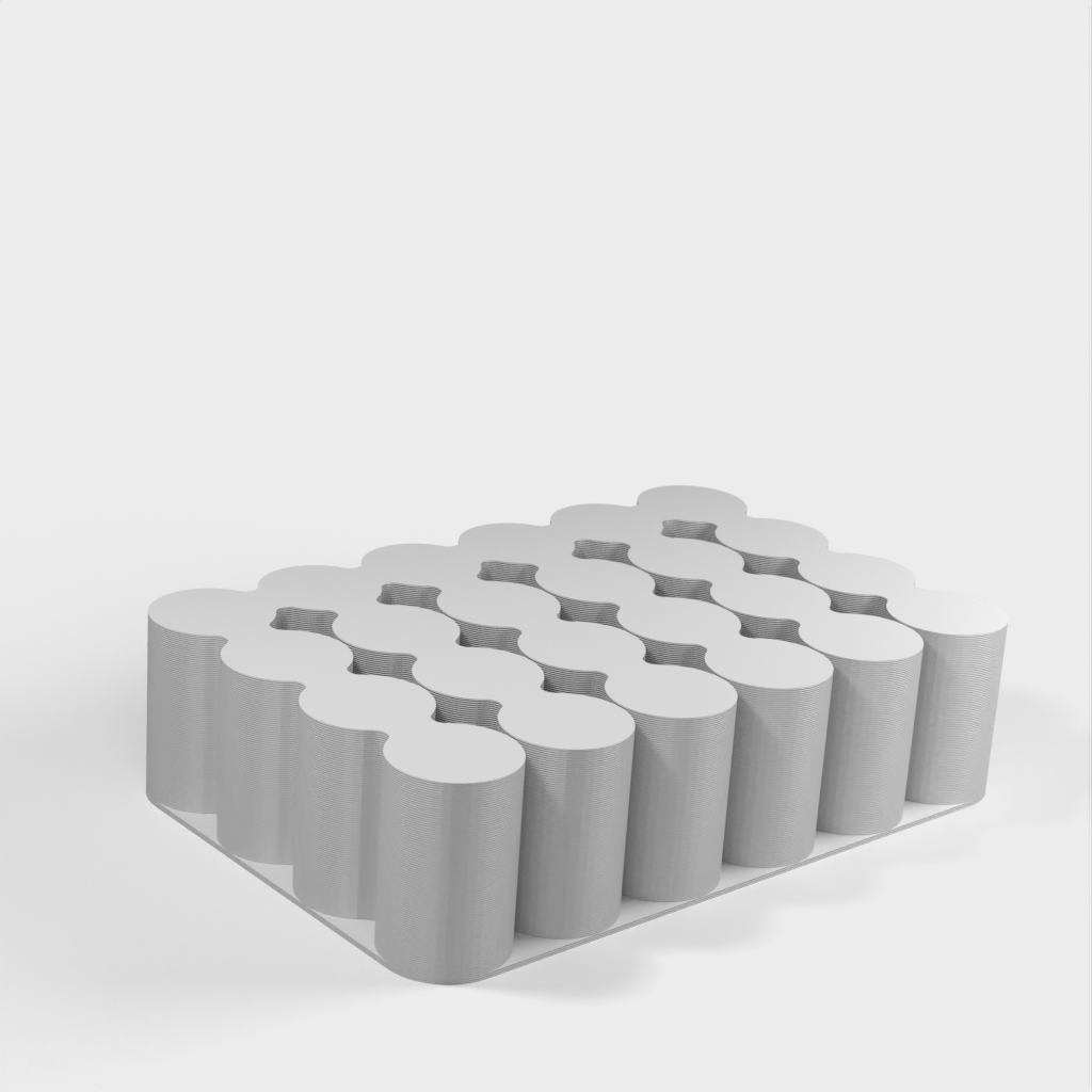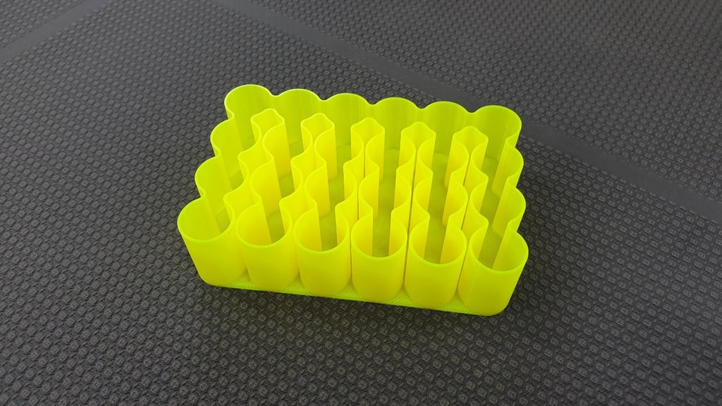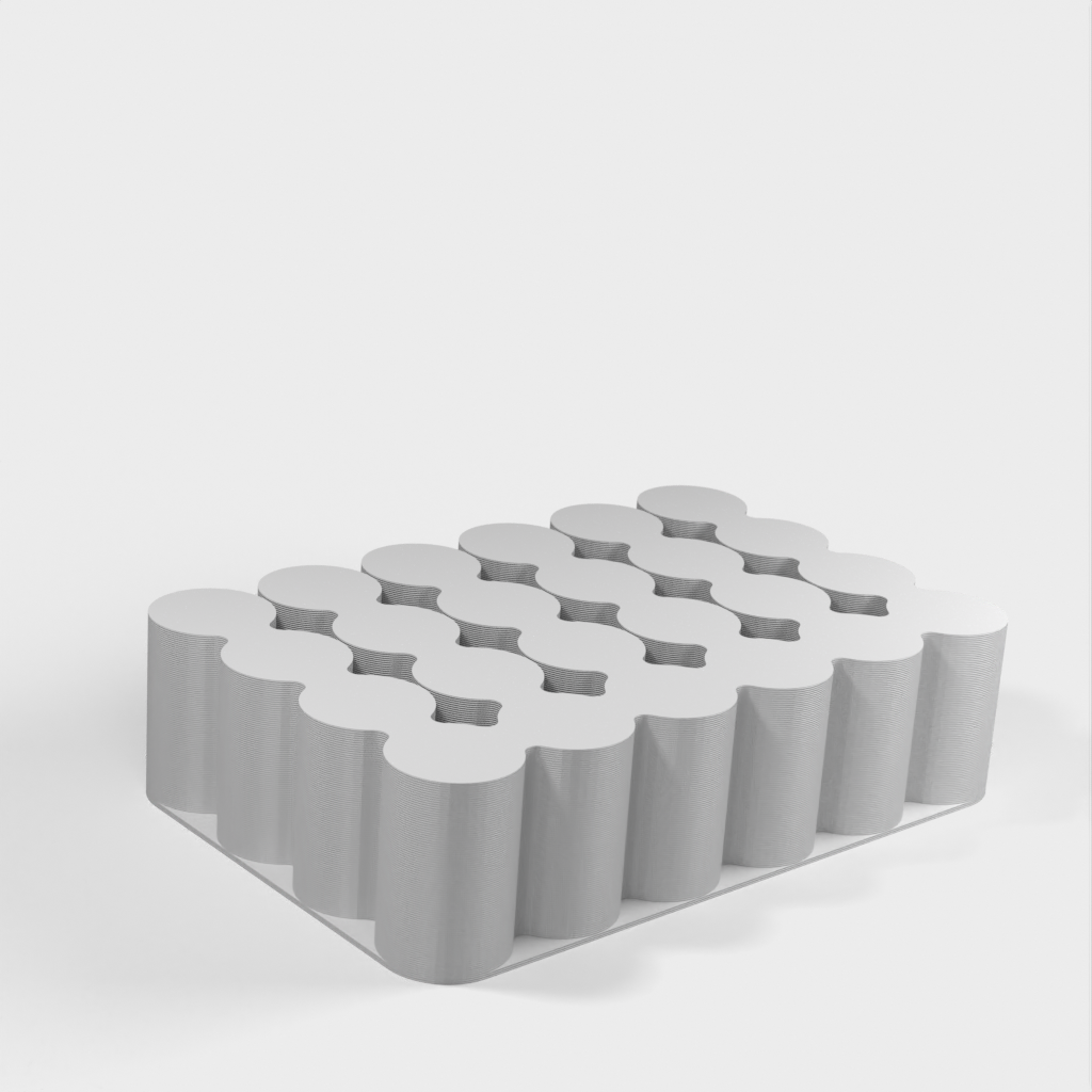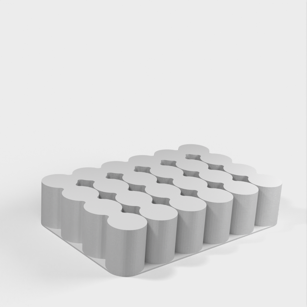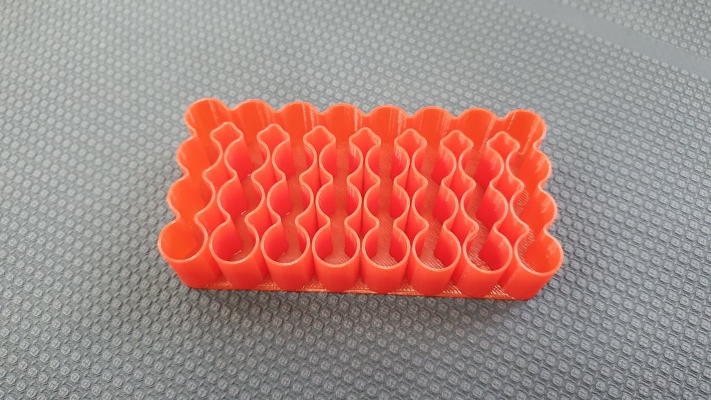 Tieni traccia delle tue batterie con questo portabatterie per batterie AA, AAA, 18650 e 9V. Il contenitore per AA contiene 24 batterie, AAA 32, 18650 24 e 9V 10. È possibile stamparli in qualsiasi materiale, ma in questo caso sono stampati in PLA. Se avete bisogno di un supporto per batterie di dimensioni diverse o con più slot, lasciate un commento e verrà caricata una nuova versione.