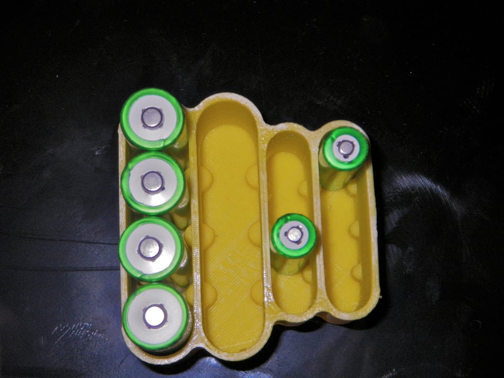 Tenete le batterie al loro posto con questo portabatterie. Può contenere fino a 8 batterie AA e 8 batterie AAA. La versione 2 di questo portabatterie presenta dei piccoli fori nella piastra di base, ma per il resto è identico alla versione originale.